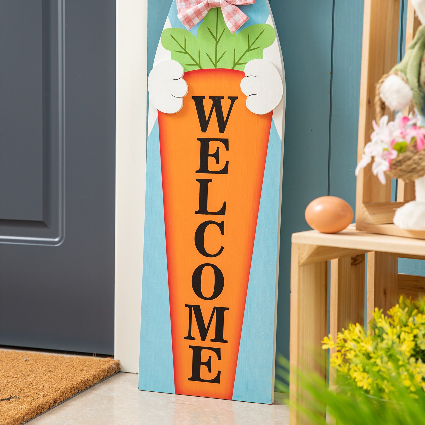 42“H Easter Wooden Bunny Welcome Porch Sign