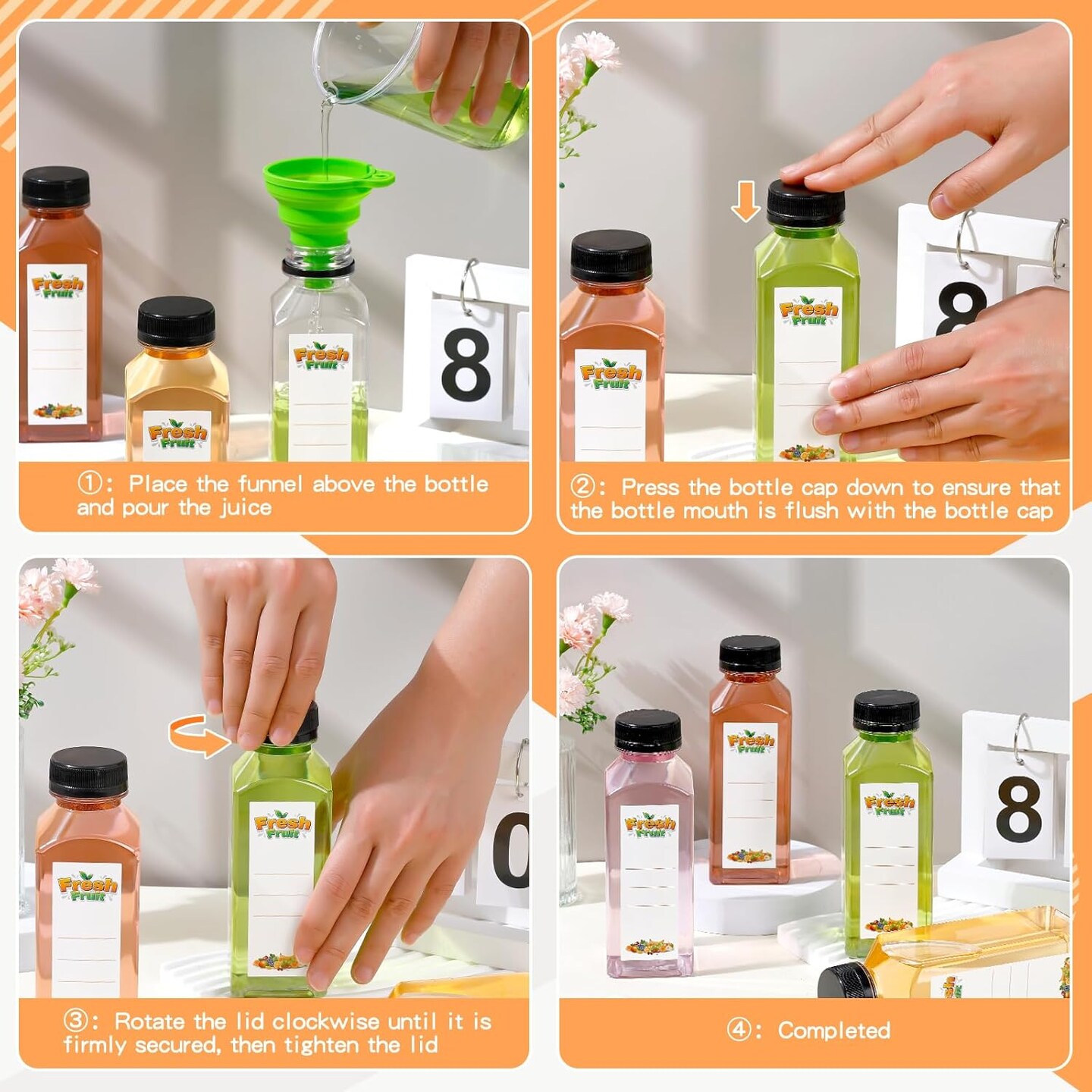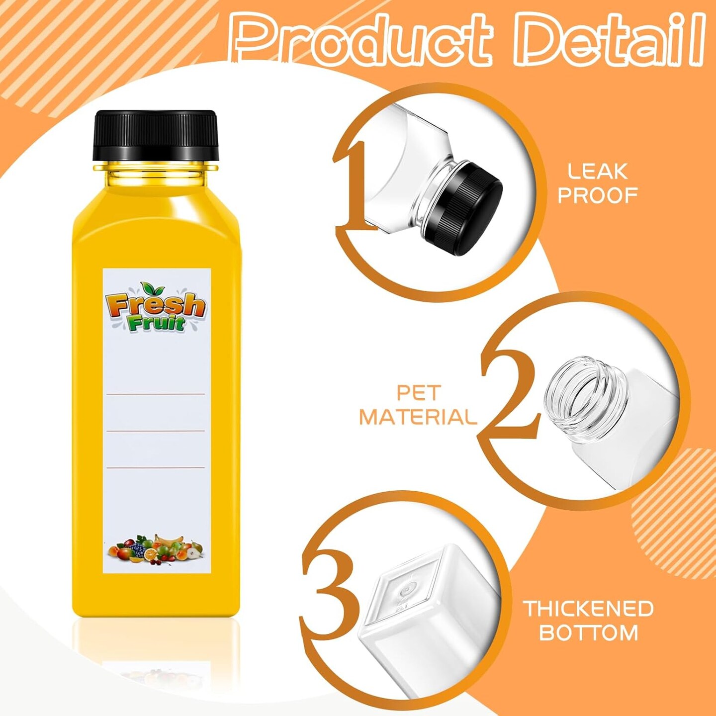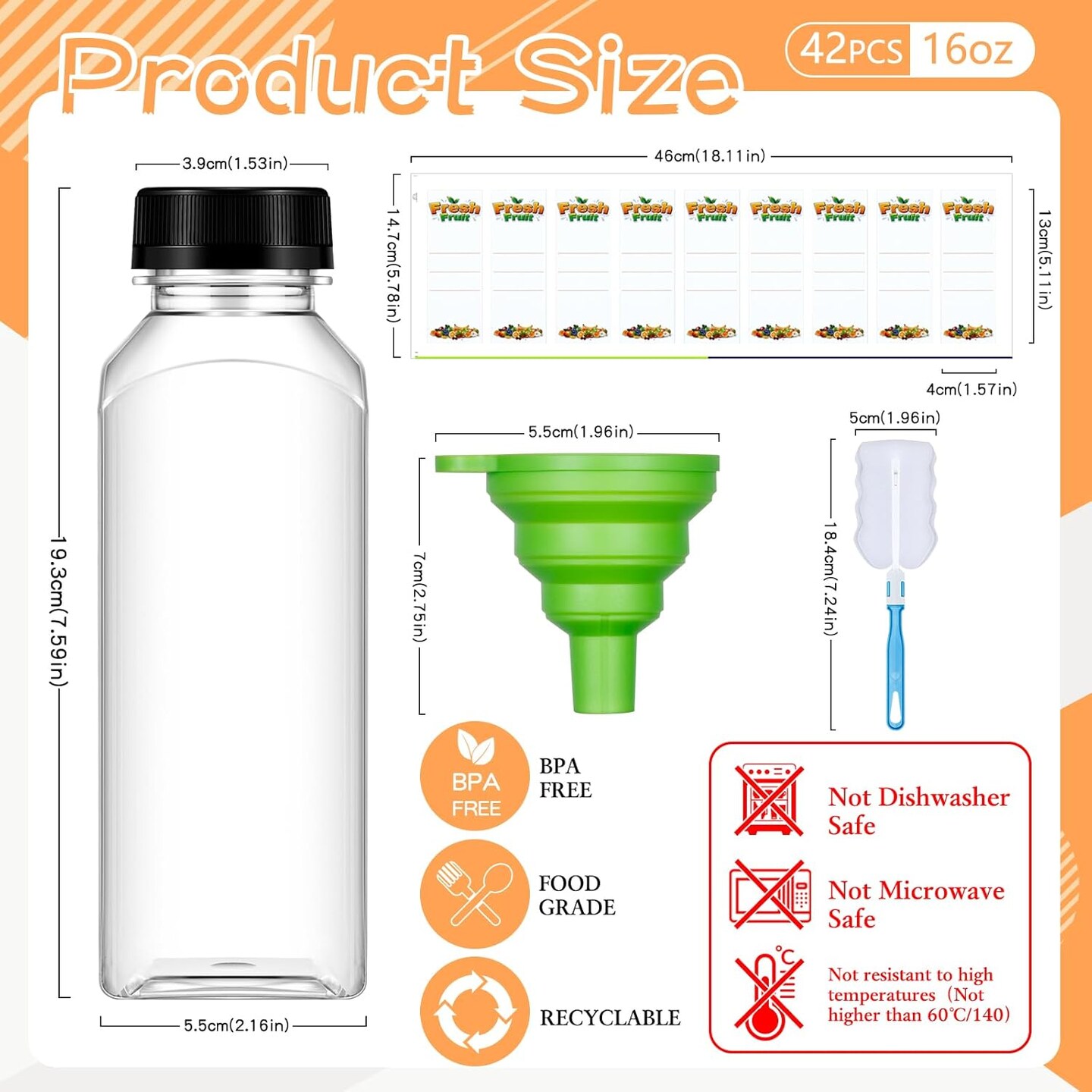 42Pcs 16oz Plastic Juice Bottles with Caps (Black Lid)