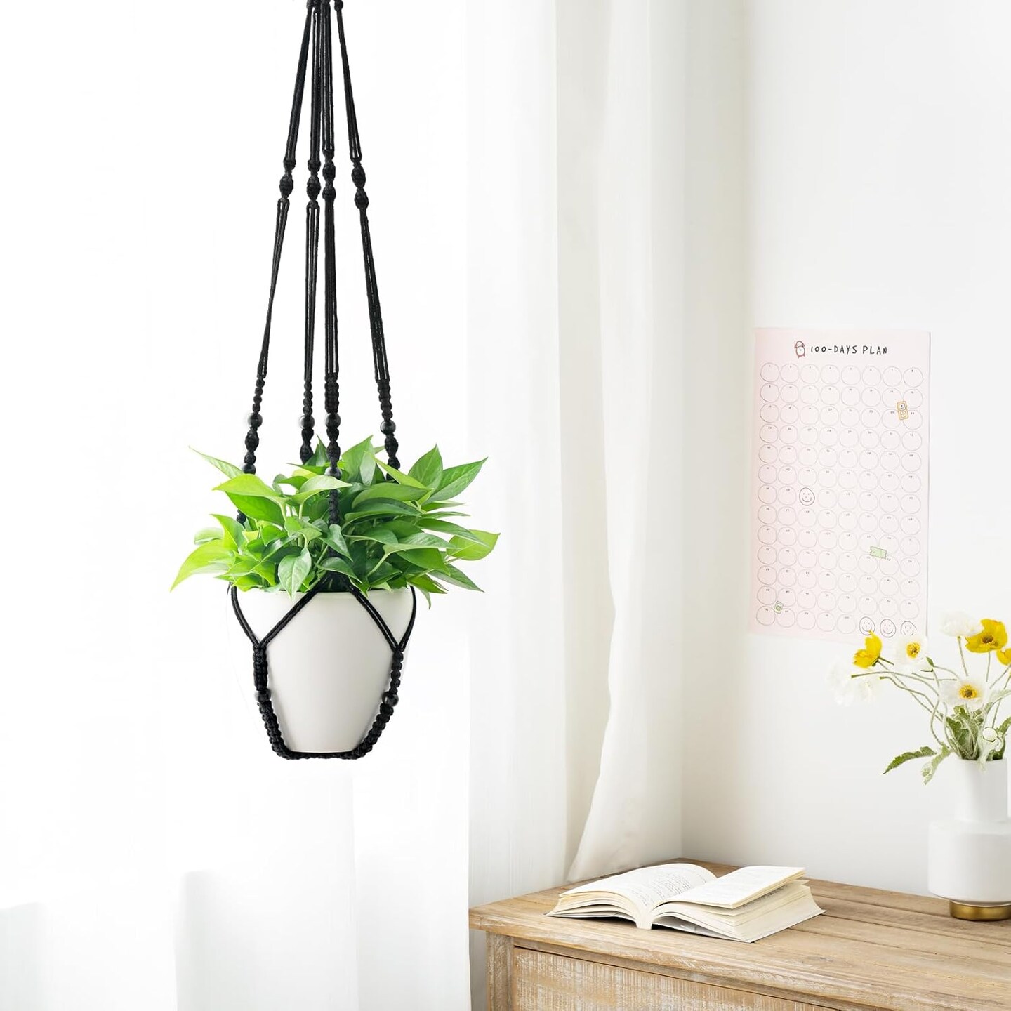 43 Inch Macrame Plant Hanger Large for up to 12 Inch Pot Extra Long Hanging Plant Holder (Black)