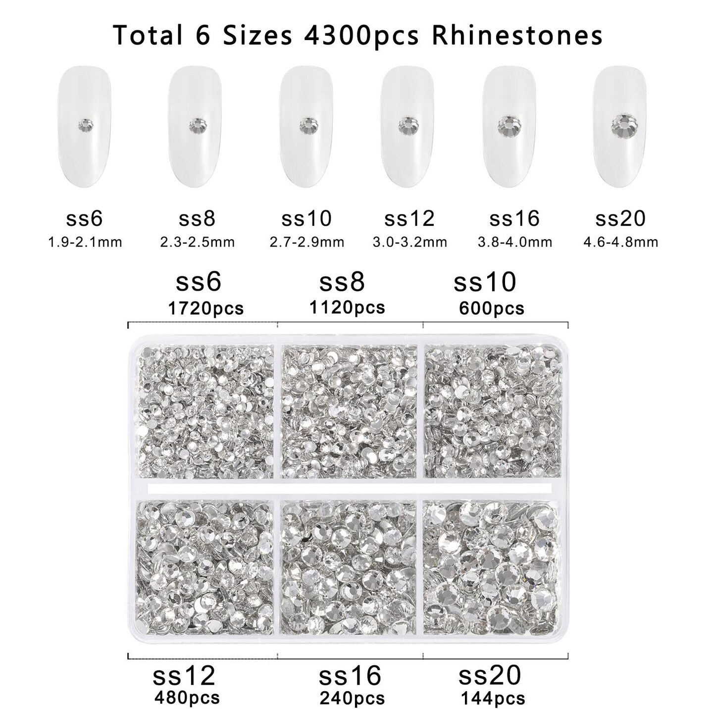 4300 Pieces Flatback Rhinestones,Clear Rhinestones Nail Gems Round Crystal Rhinestones for Crafts,Mixed 6 Sizes with Picking Tweezers and Wax Pencil Kit, SS6-SS20,Crystal