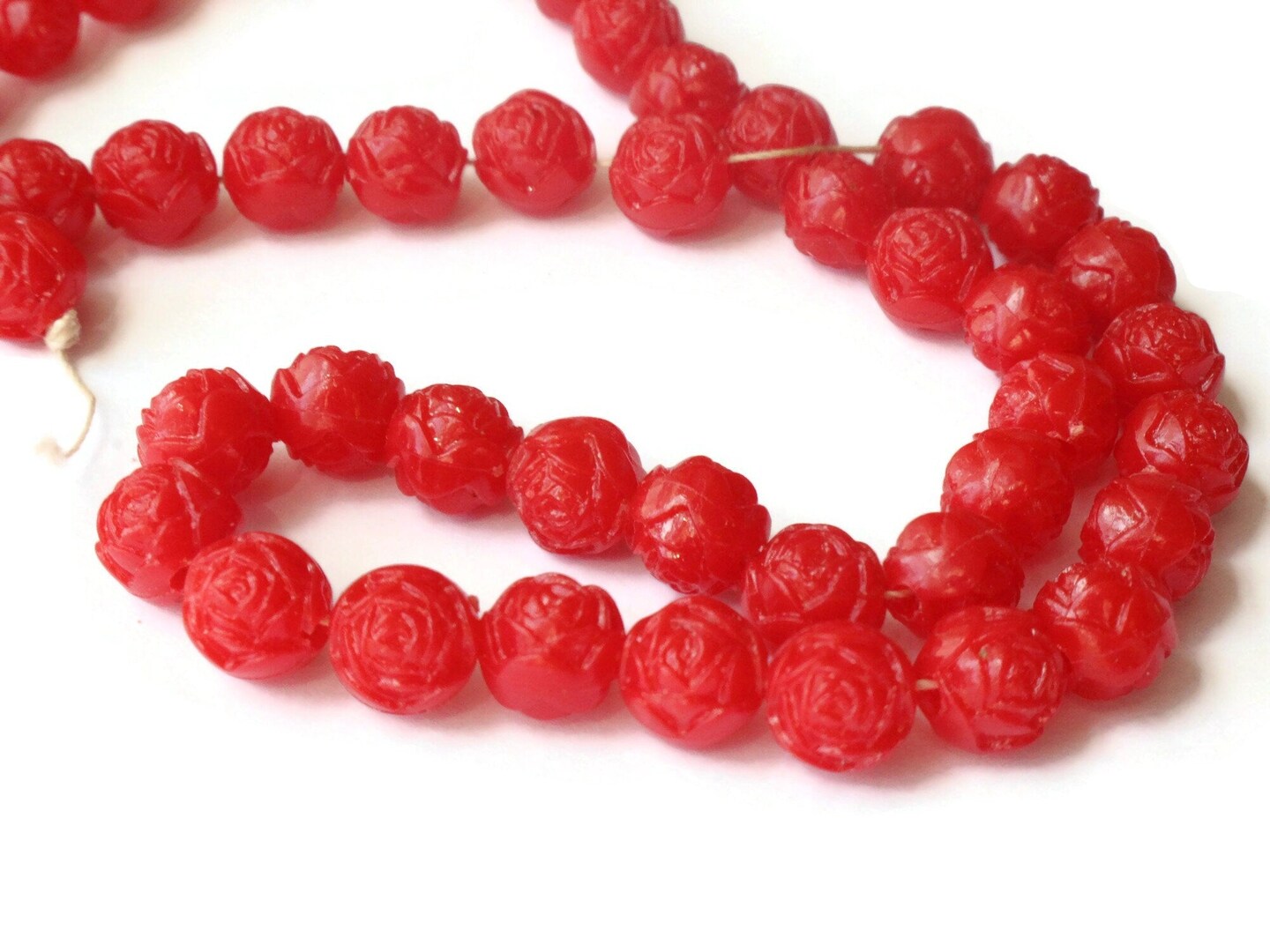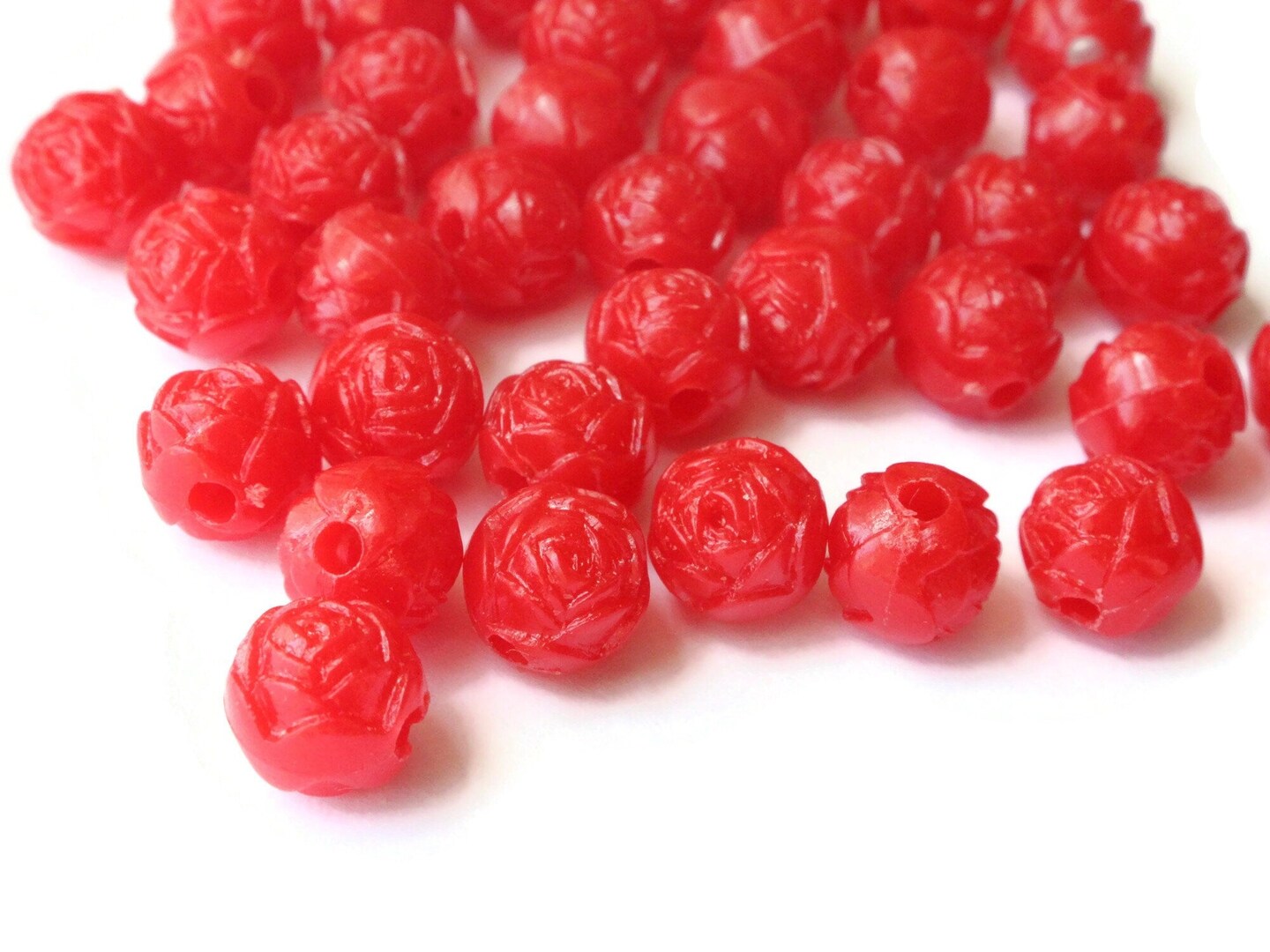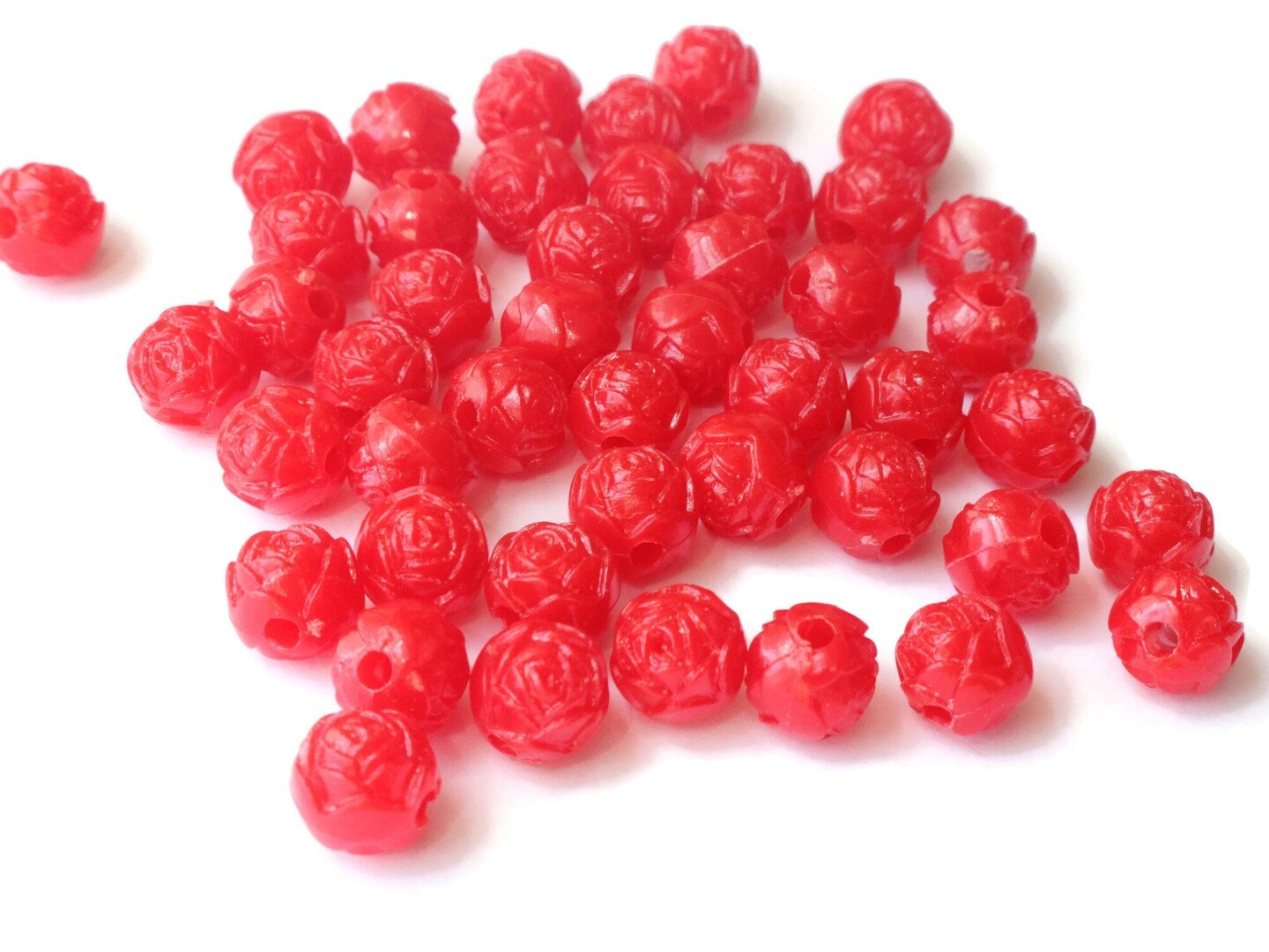 44 8mm Vintage Plastic Red Pressed Rose Beads Full Strand