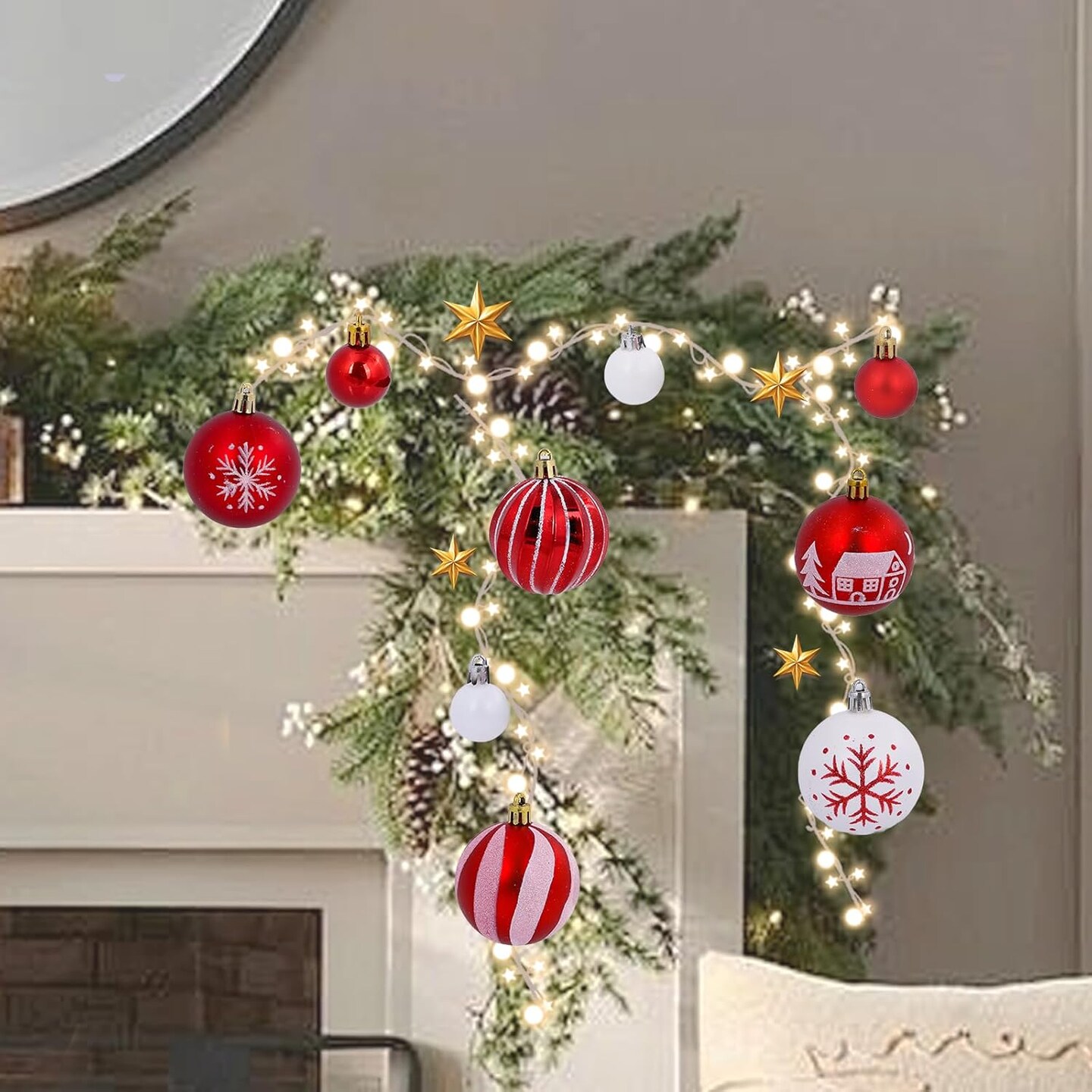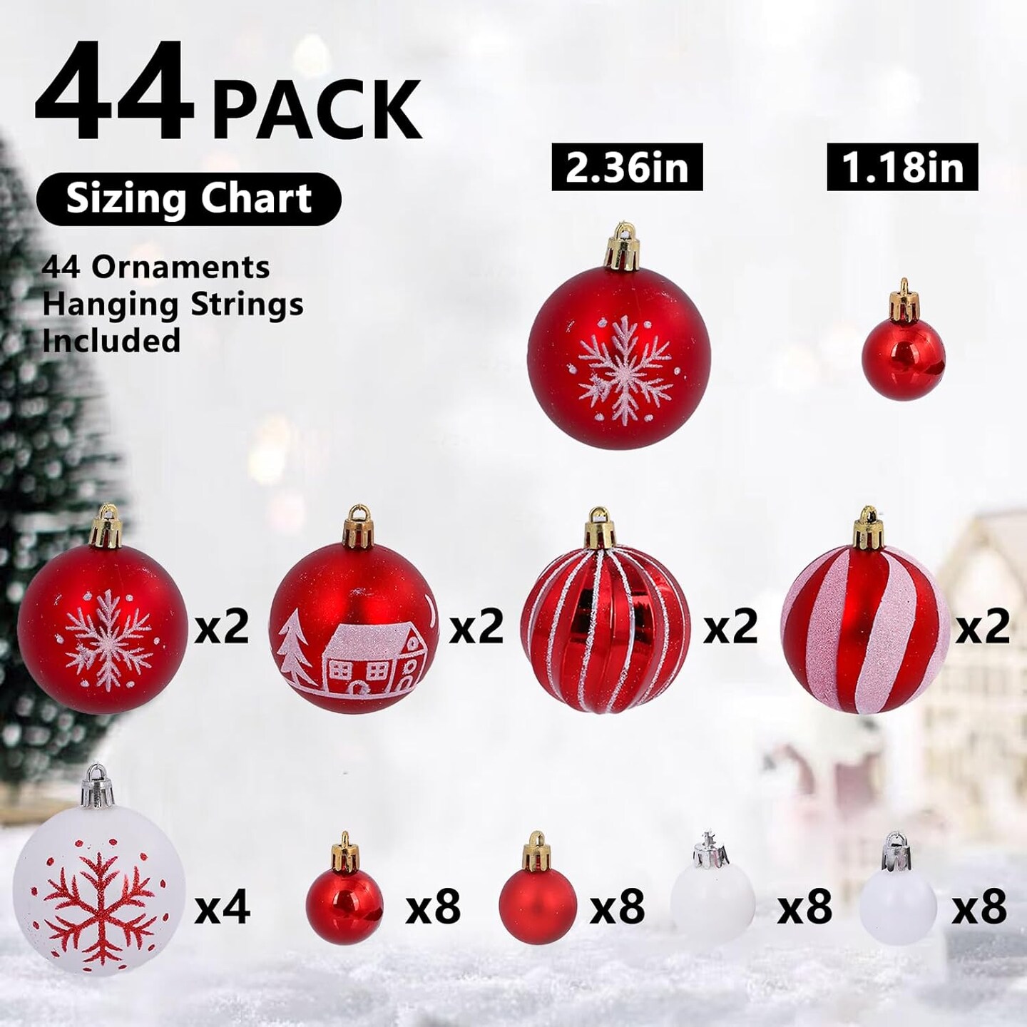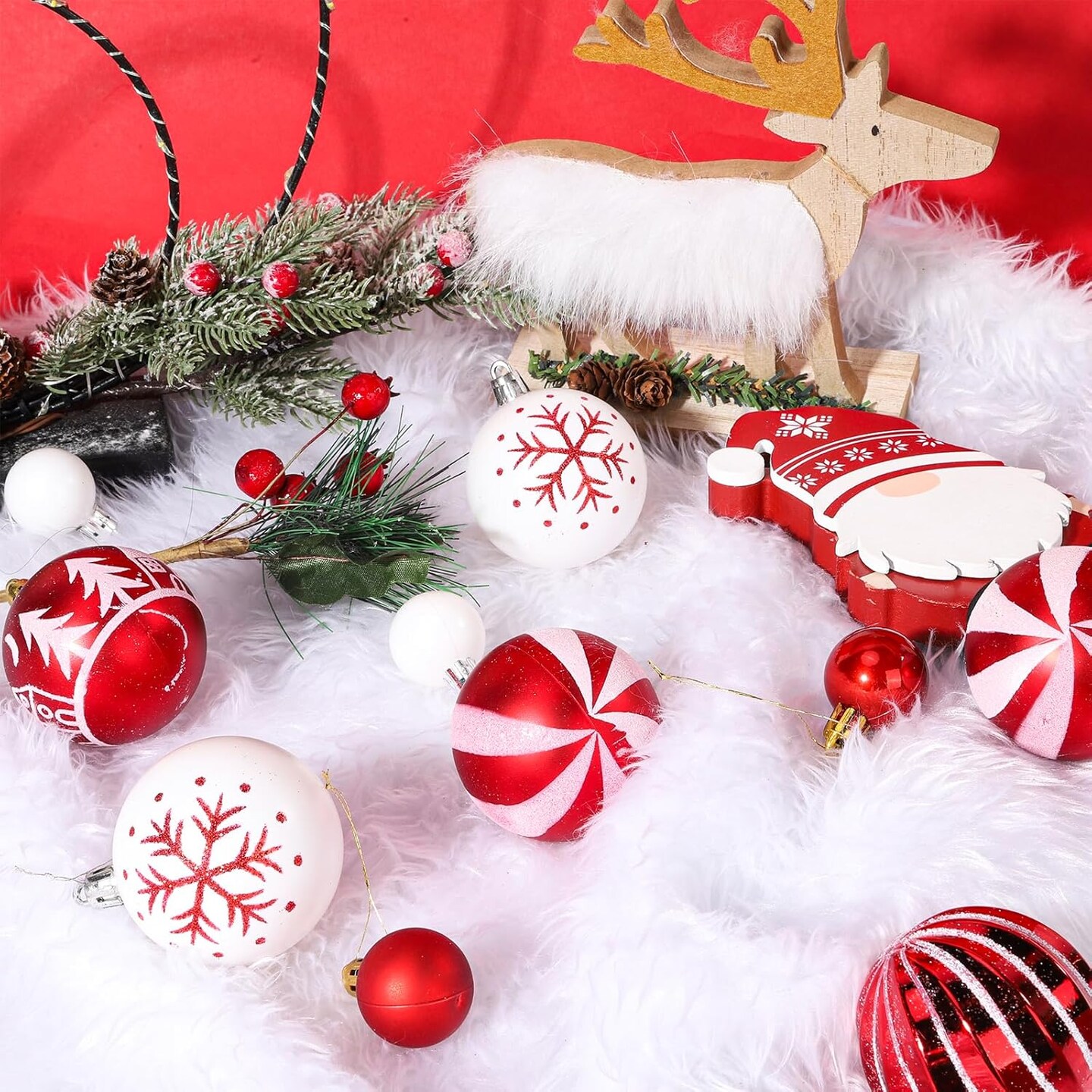 44Pcs Christmas Ball Red and White Christmas