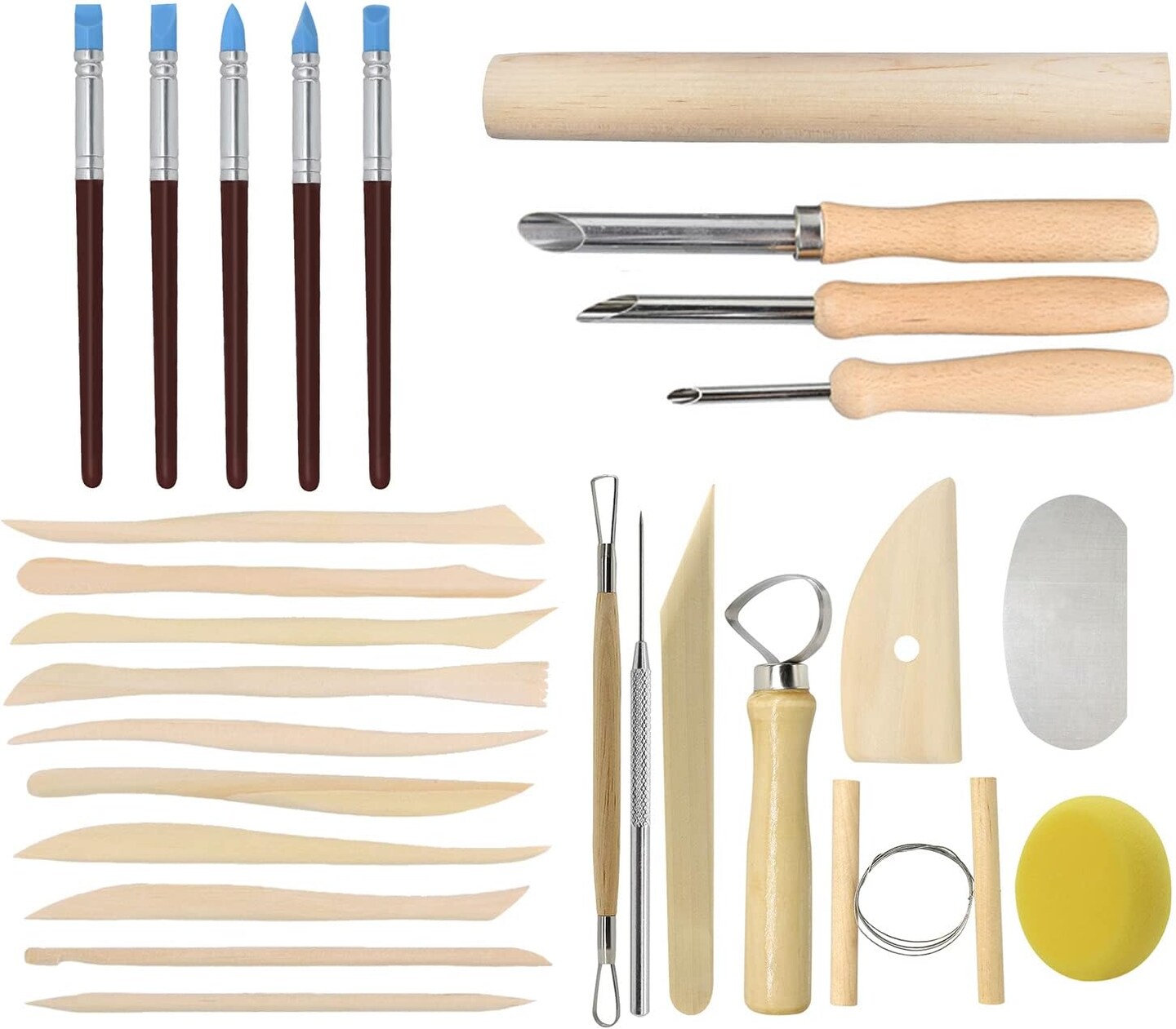 44-Piece Ceramic Clay Sculpting Tool Set – Plastic Case, Modeling, Shaping, Dotting for Beginners & Artists