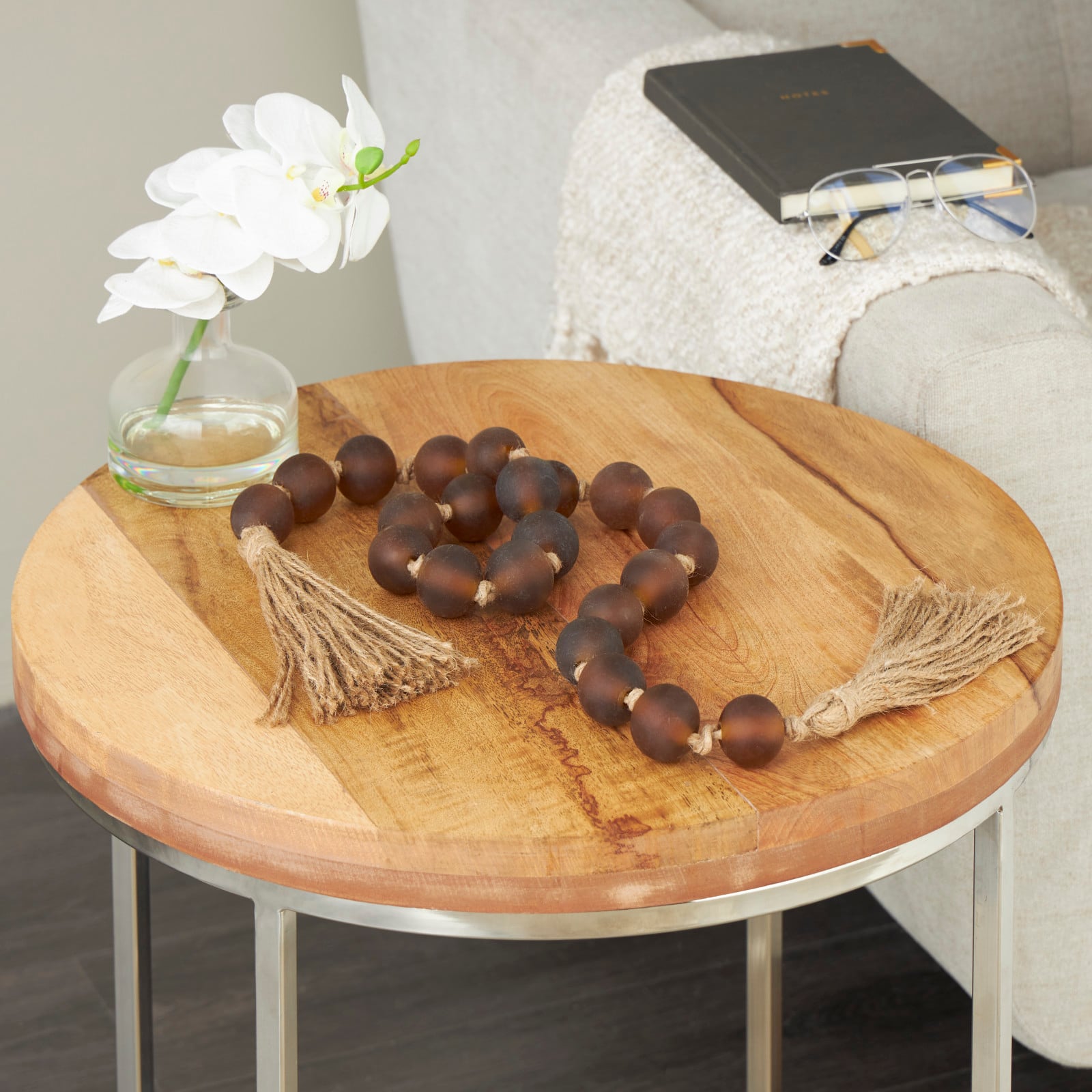 45" Handmade Round Frosted Glass Bead Garland with Tassels & Knotted Jute