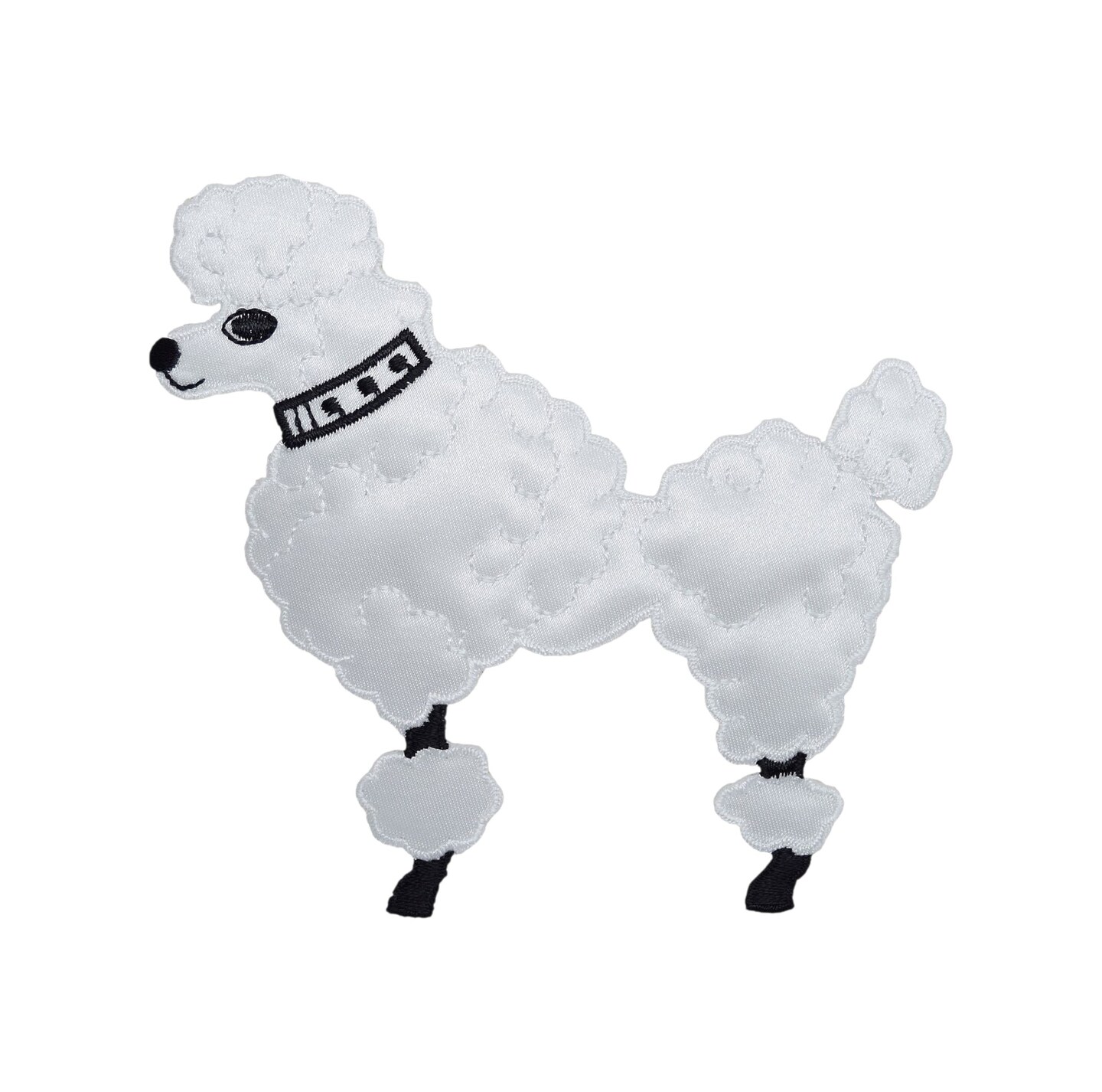 4.5 inch - Medium 50s White Poodle, Facing Left Embroidered, Iron on Patch