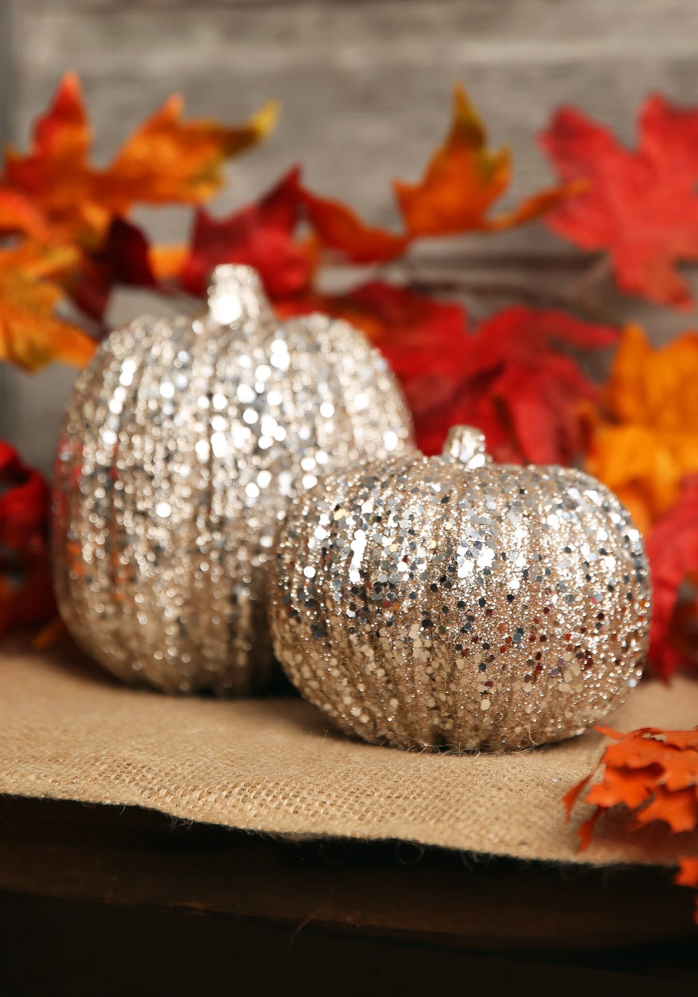 4.5 Inch Short Champagne Glitter Pumpkin Decoration