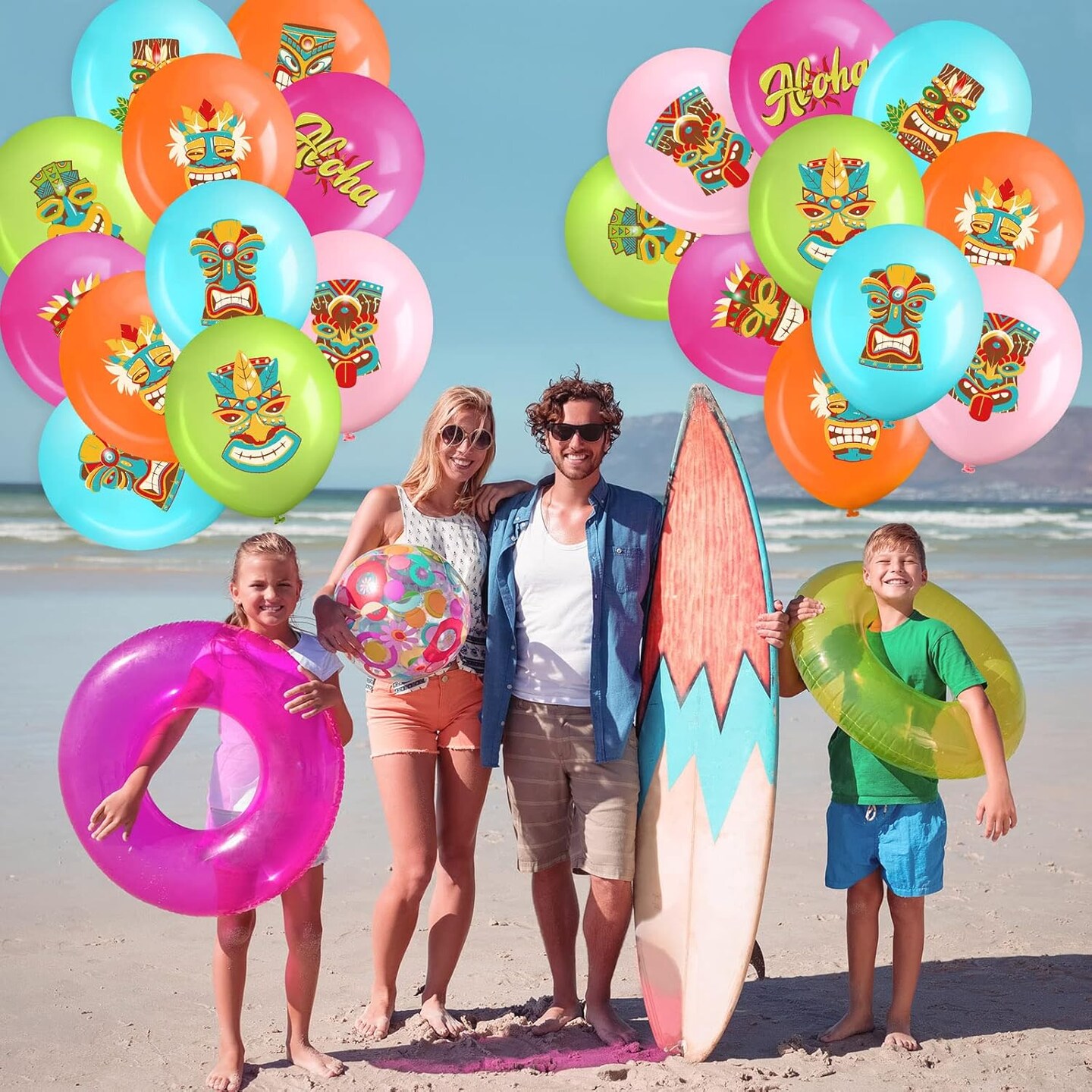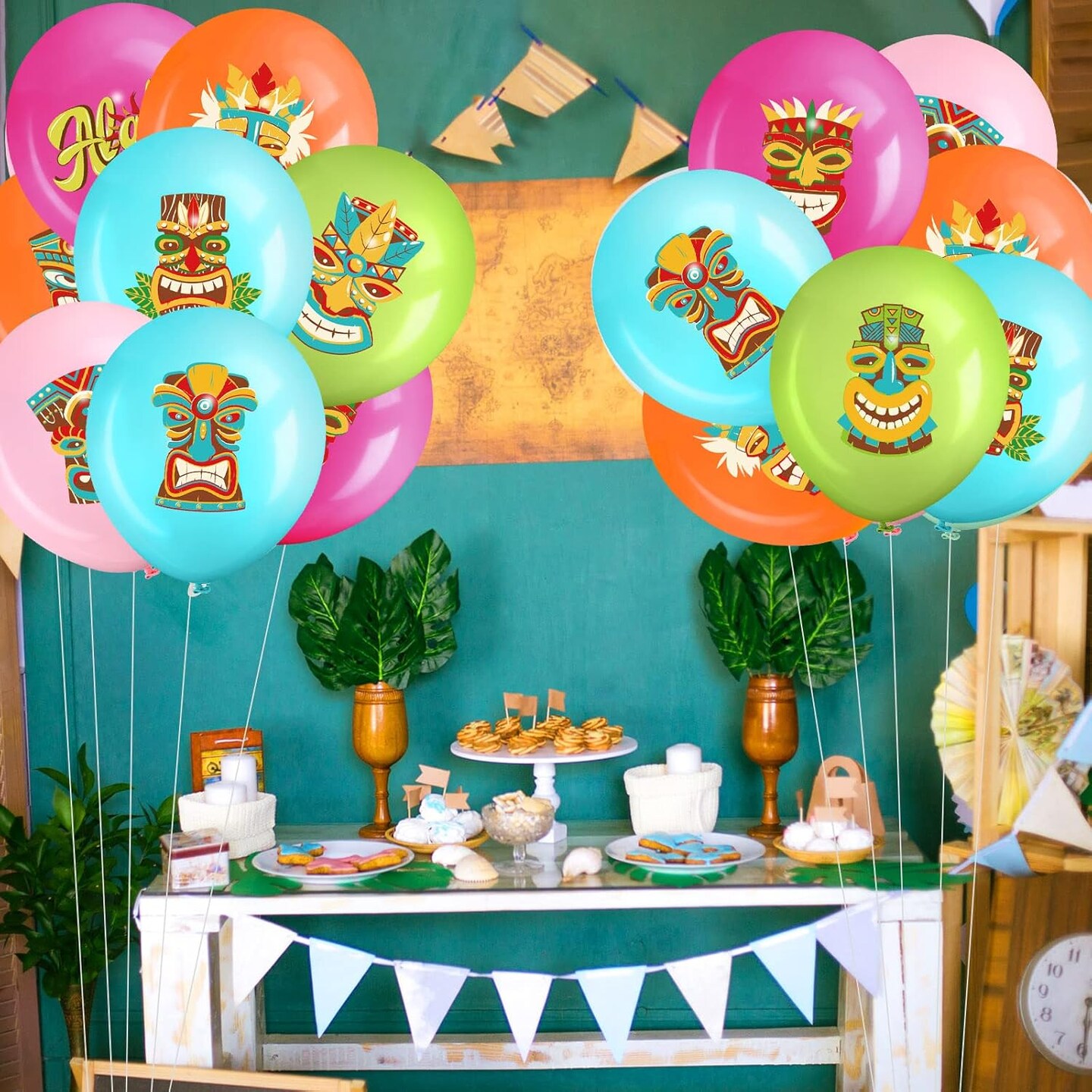 45 Pcs Hawaiian Party Decorations Tropical Tiki Balloons (Aqua Blue, Rose Red, Orange, Light Pink, Light Green)