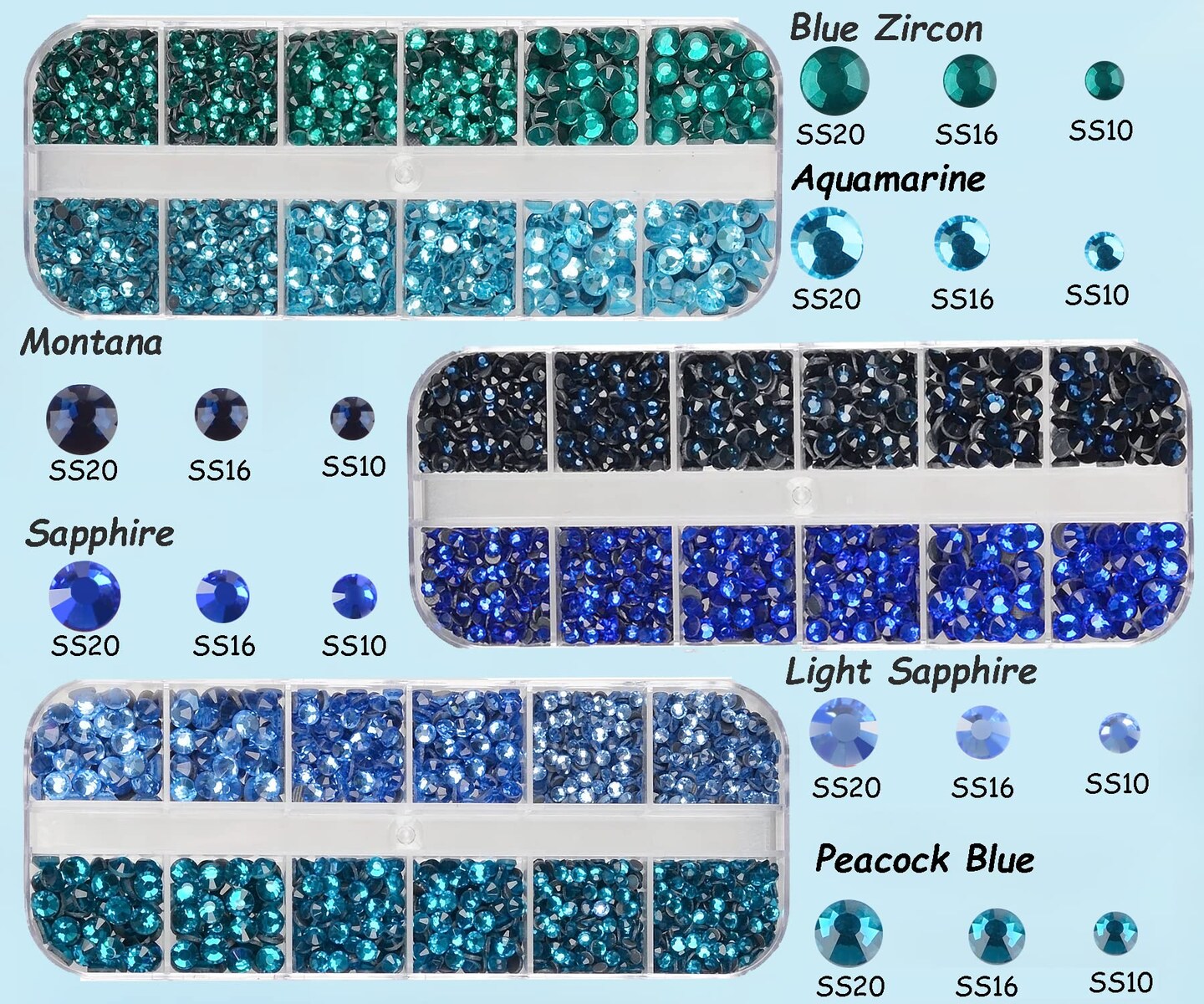 4500pcs+ Flatback Glass Hotfix Iron On Rhinestones Crystal for DIY Making with 1 Tweezer & 1 Picking Pen for Shoe, Cloth, Face Art, Bag, Manicure(3-Sizes, 6-colors, Blue Color Series)
