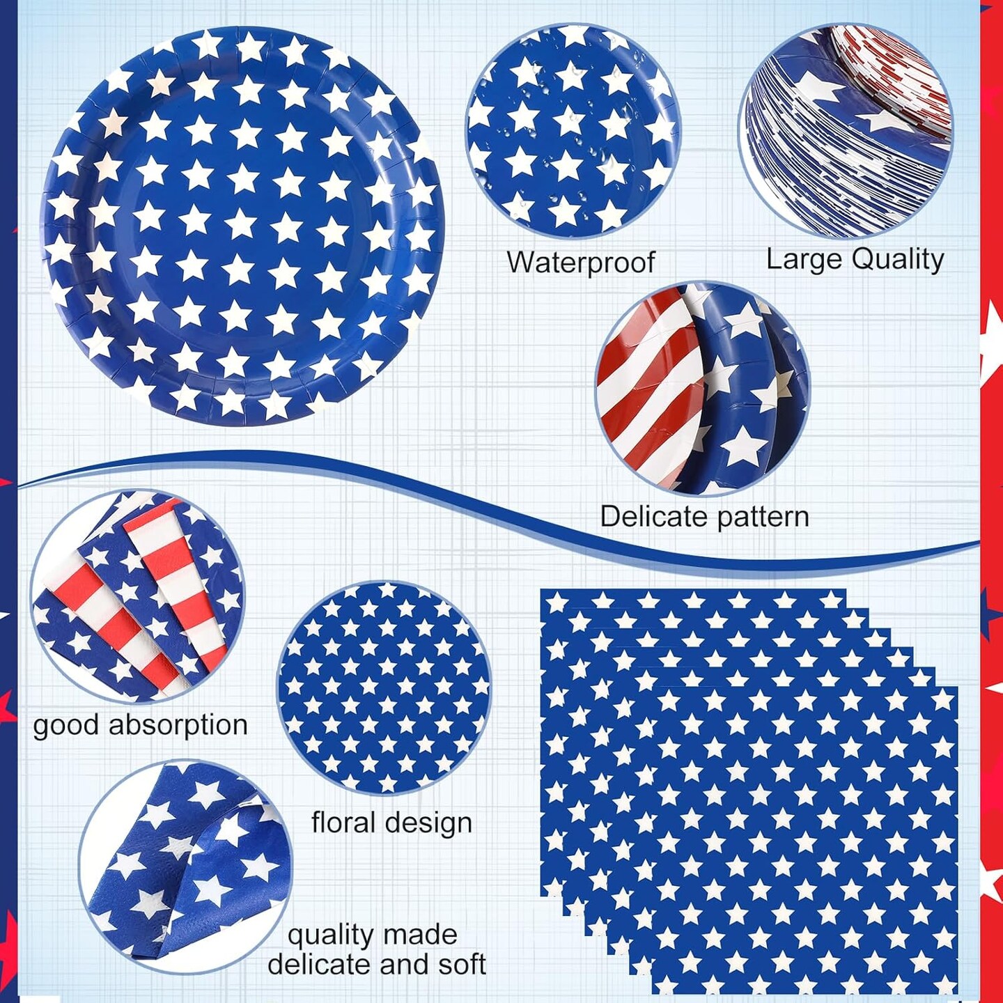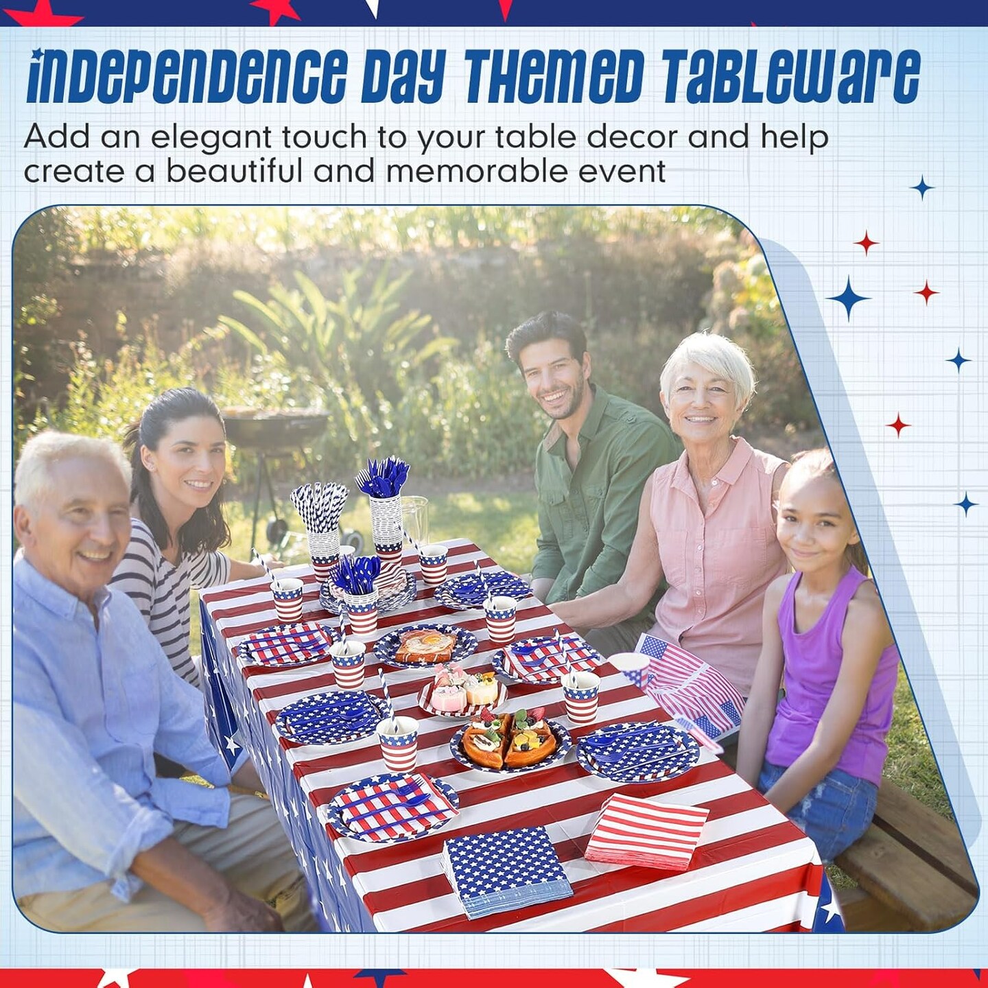 452 Pcs Patriotic Party Supplies American Flag Decoration 4th of July Paper Plates Napkins Cups Tablecloth Cutlery Straws