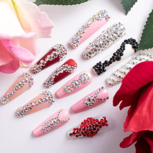 4520 Pieces Two Packs of Flatback Rhinestones Colorful Nail Art Rhinestones Flatback Crystal Colorful+AB+Transparent White Rhinestone with Picker Pencil and Tweezer For Nail Art and Decoration
