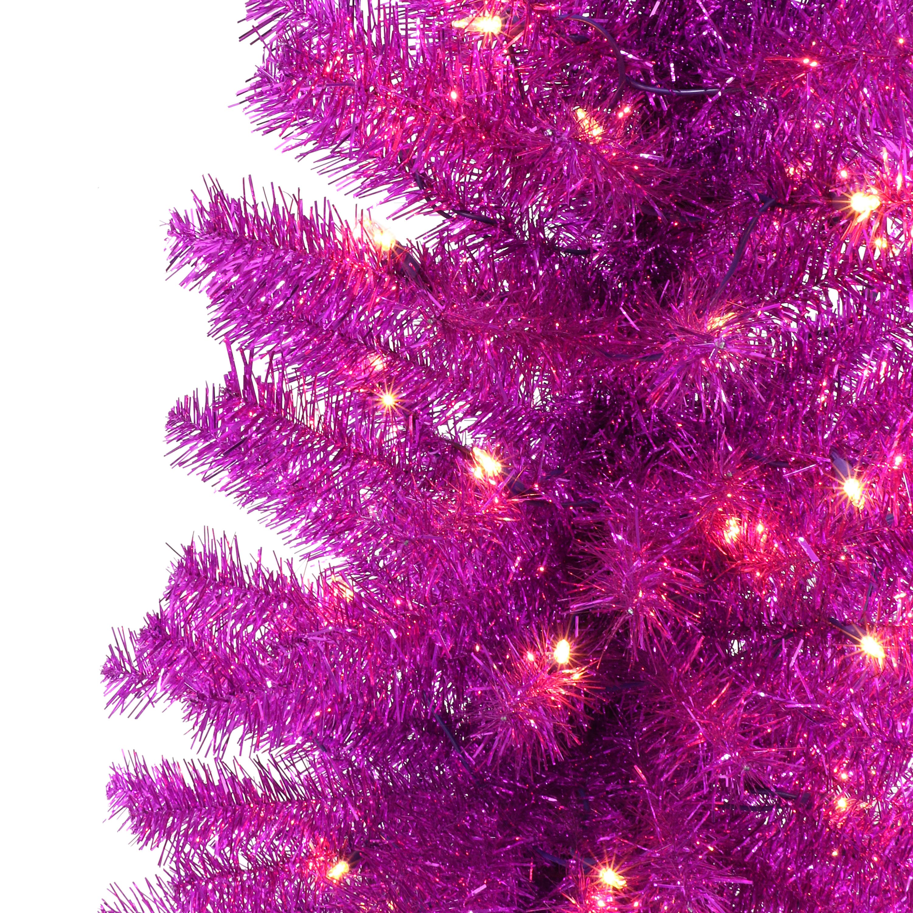 4.5ft. Pre-Lit Pink Tinsel Artificial Christmas Tree, Clear Lights