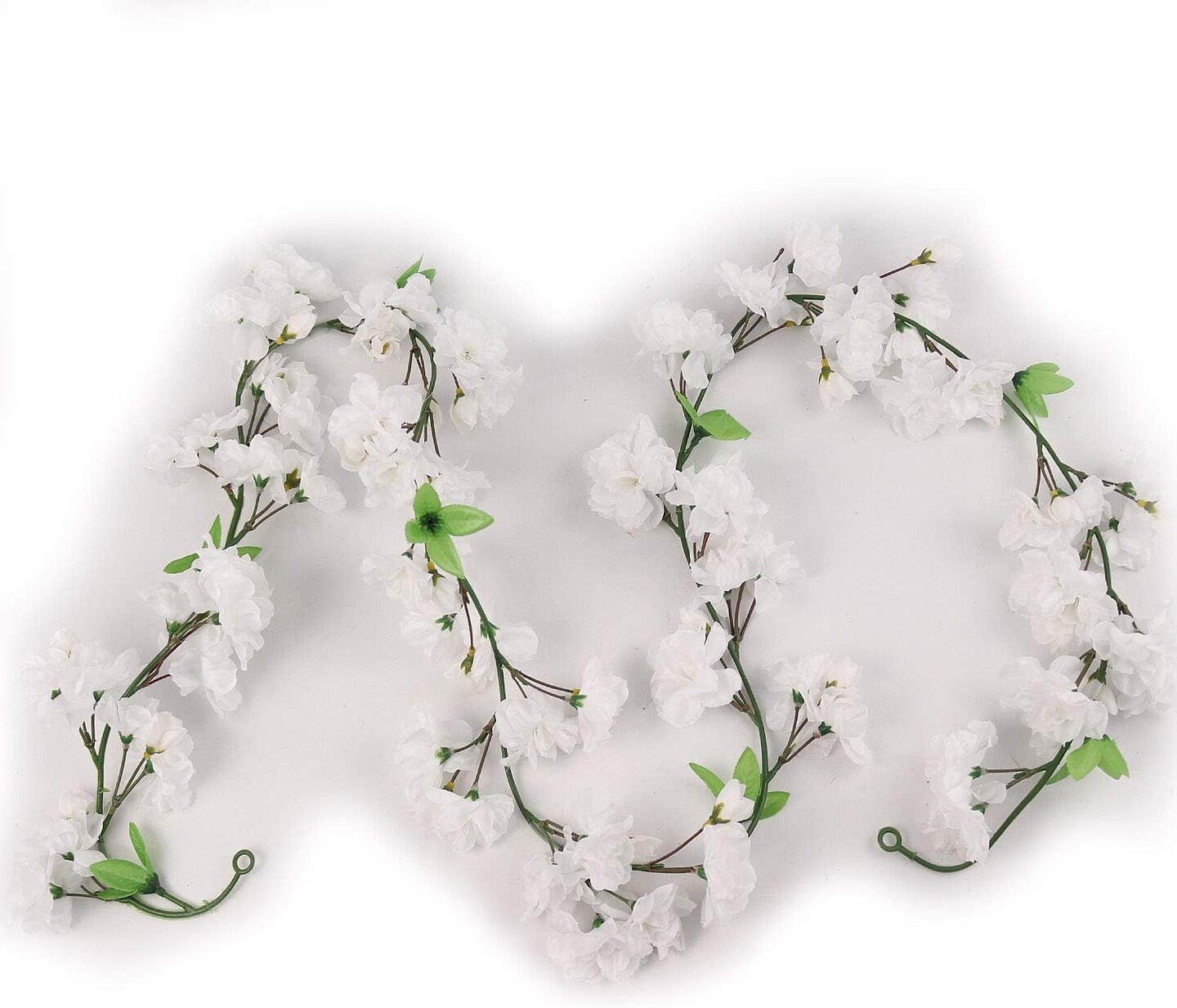 4.5ft White Cherry Blossom Garlands - 3-Pack, Artificial Flowers, Home & Event Decor - Perfect for Weddings, Parties - Elegant All-Season Display, Floral Home by Artificial Flowers