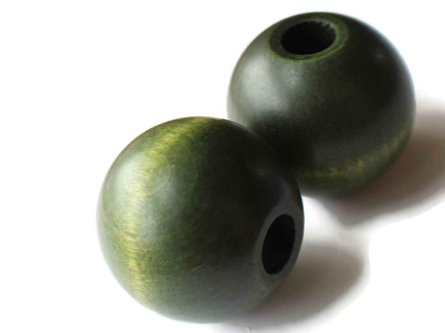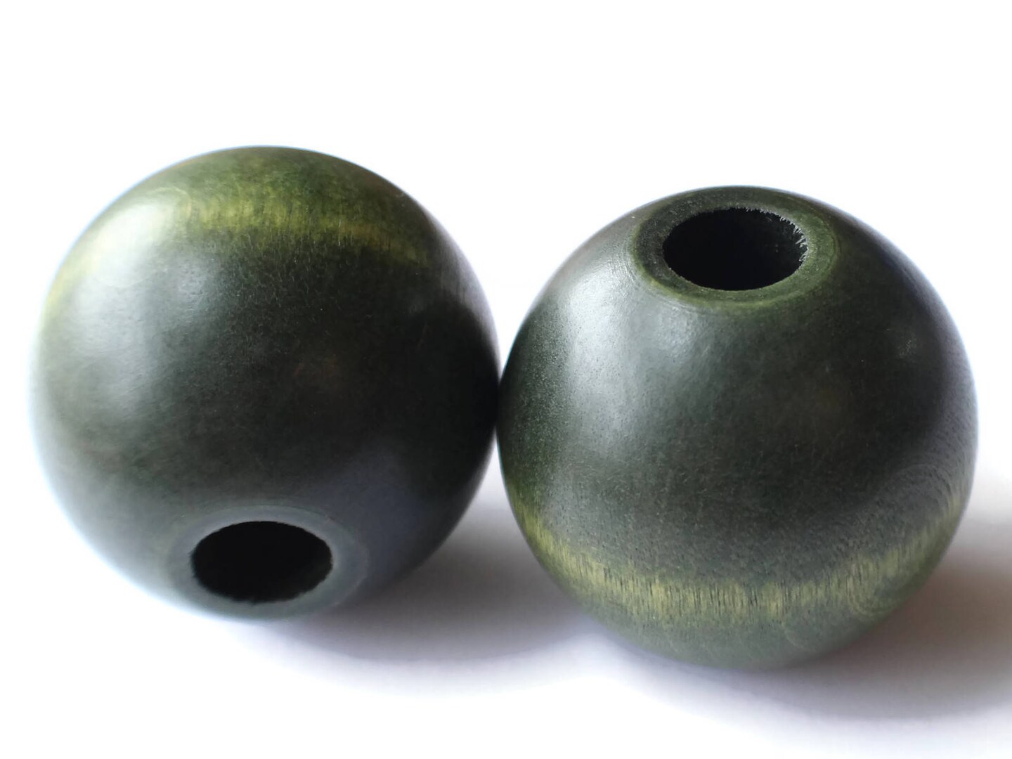 45mm Large Round Green Wood Beads Vintage Macrame Large Hole Beads