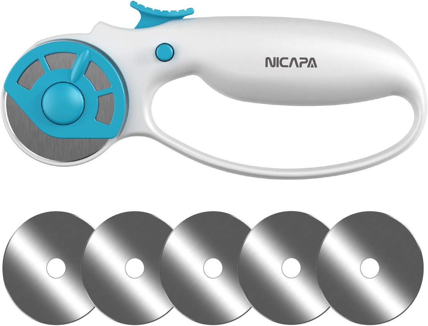 45mm Rotary Cutter for Fabric with Safety Lock Ergonomic Classic Comfort Loop Rotary Cutter for Crafting Sewing Quilting (Extra 5pcs 45mm Replacement Blades Included)