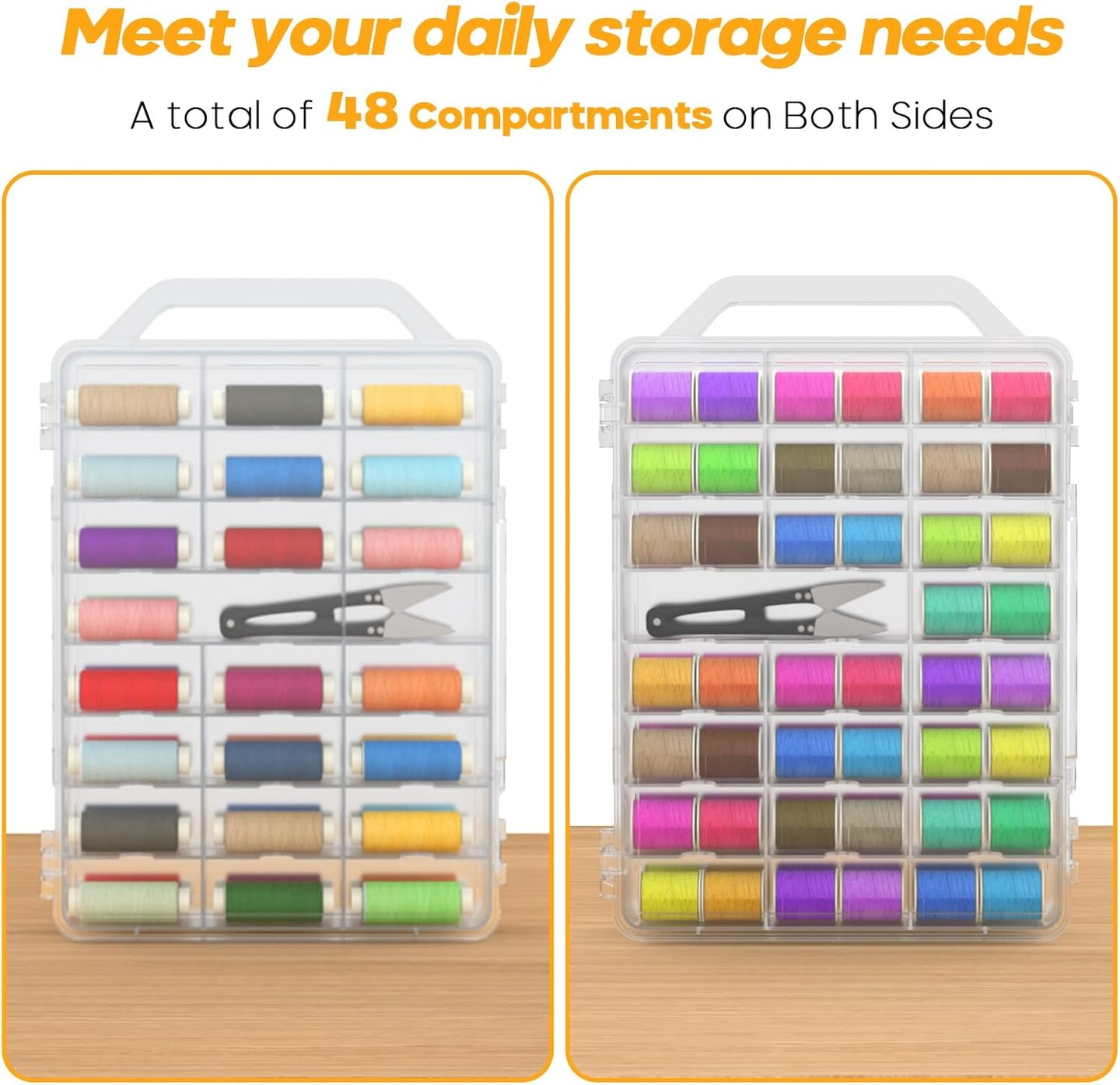 46 Grids Sewing Organizer, Double Sided Thread Box Storage, Portable Clear Plastic Organizer Box for Embroidery and Sewing Threads, Embroidery Floss, Crafts, Small Toys (Clear,1 Pack)