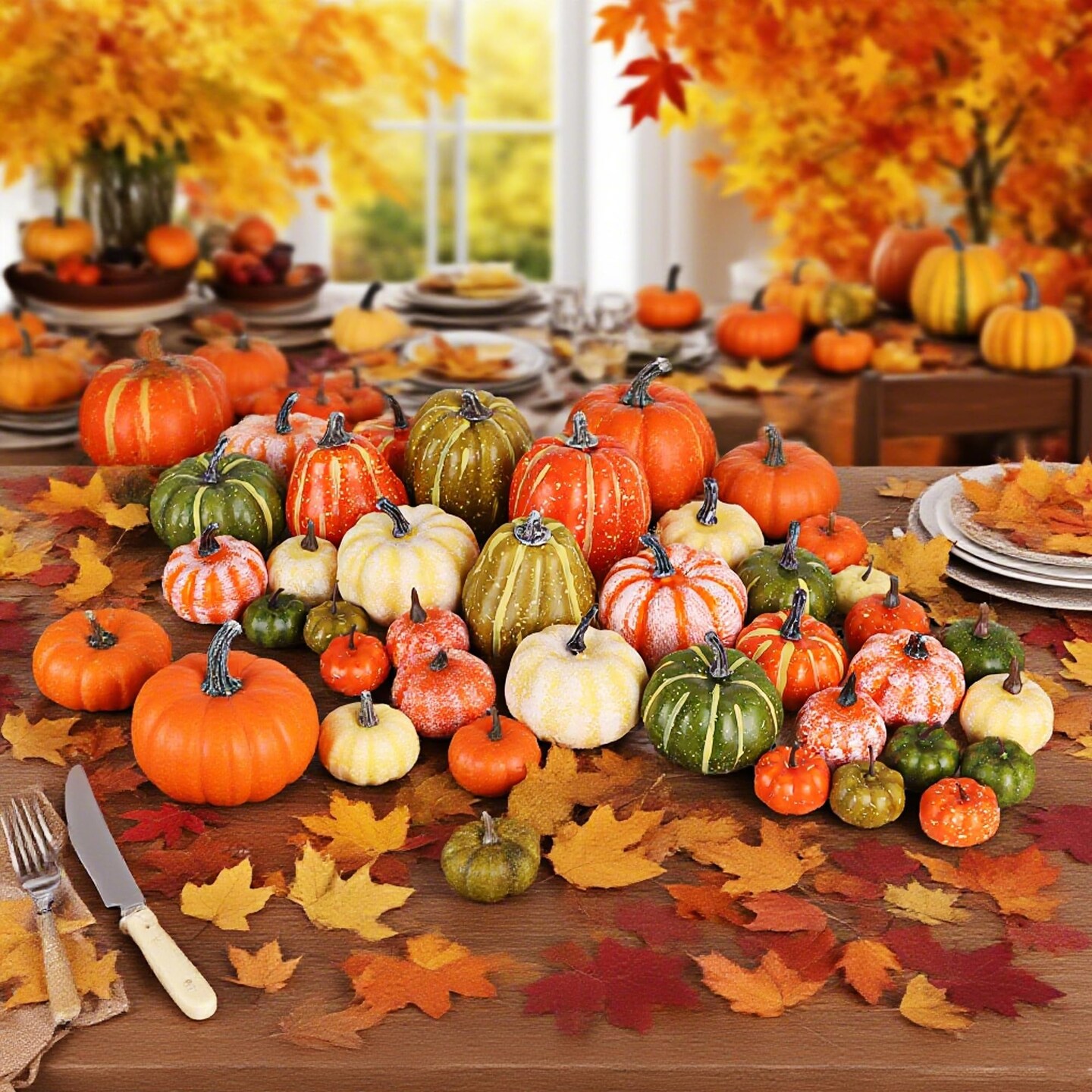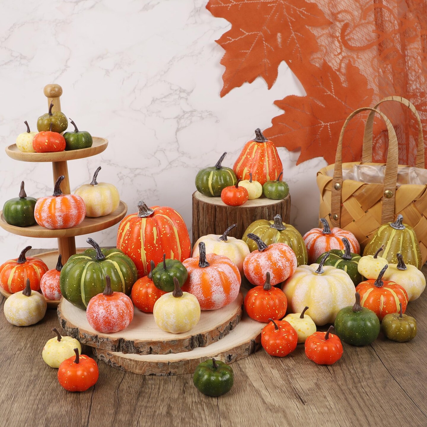 46 Pcs Assorted Size Artificial Pumpkins Fall Decorations, Mixed-Color Foam Pumpkin Autumn Decor, Decorative Faux Pumpkin for Thanksgiving Table Centerpiece Mantle Bowl Wedding Party