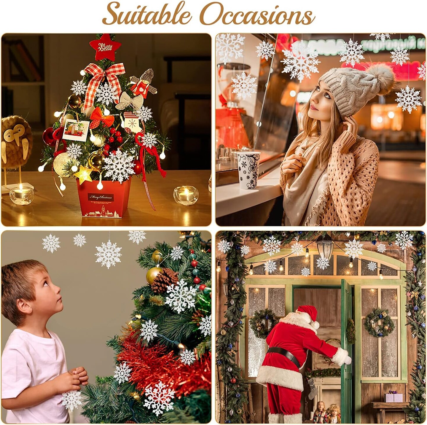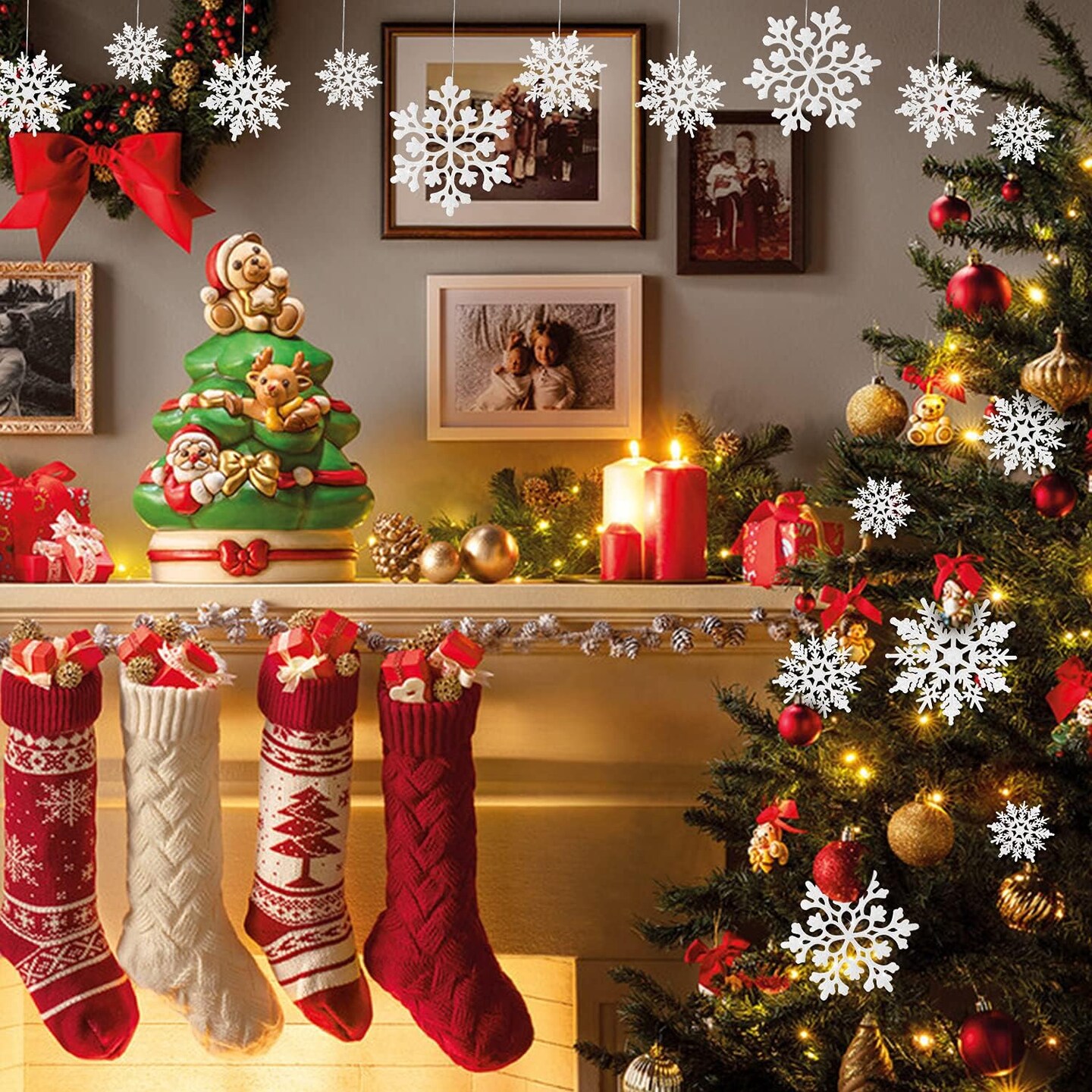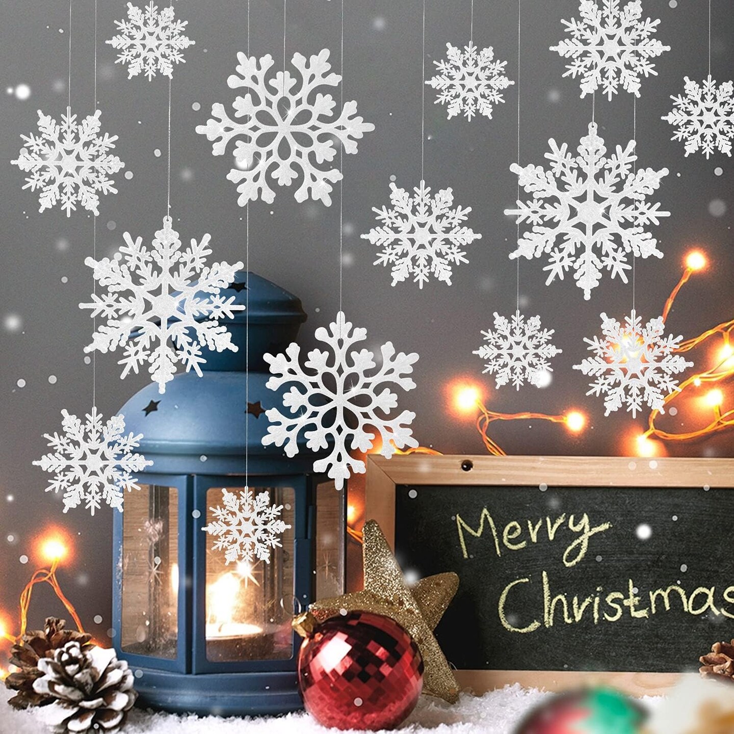 46 Pcs White Glitter Snowflake Ornaments - White, silver