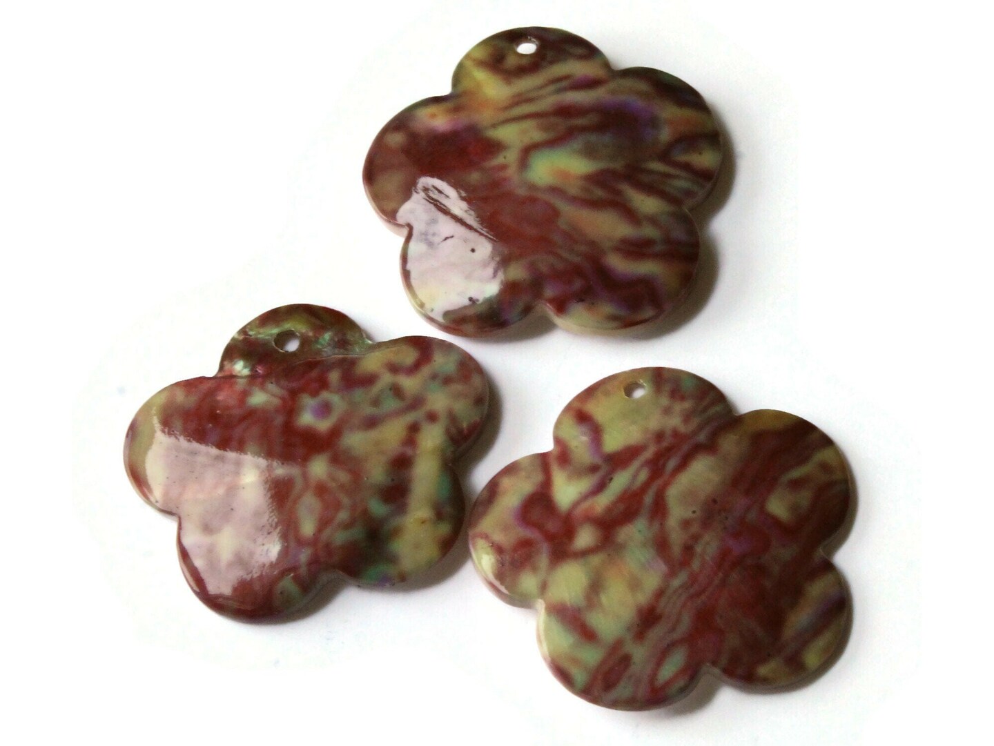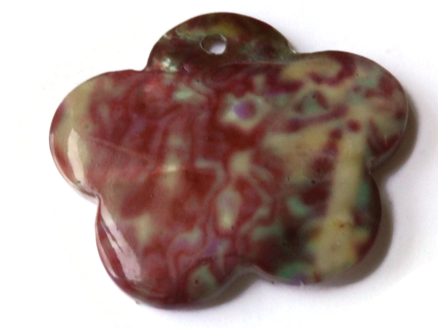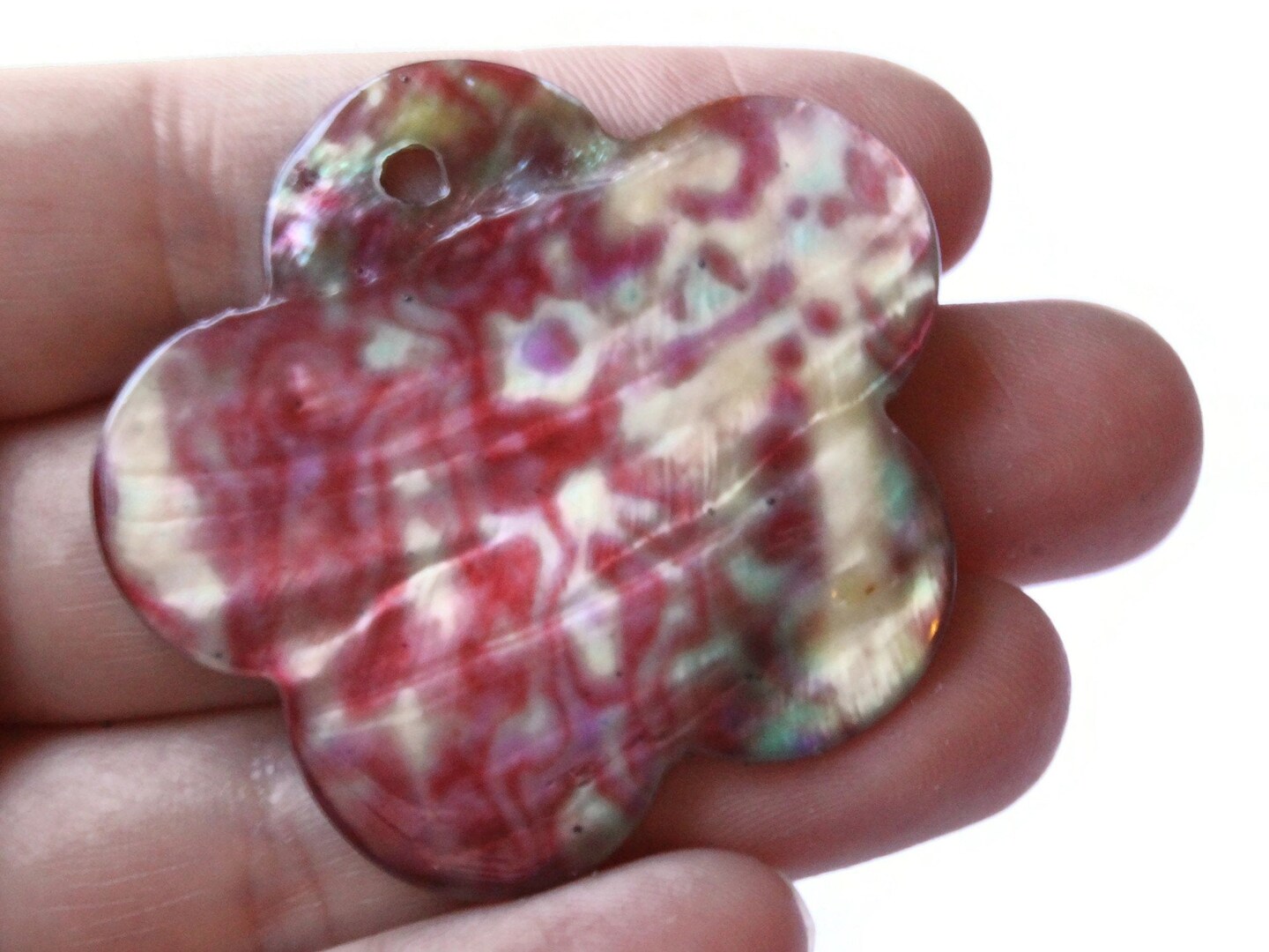 46mm Pink and Green Tie Dye Printed Flower Shell Pendant
