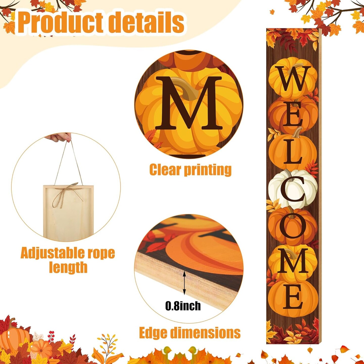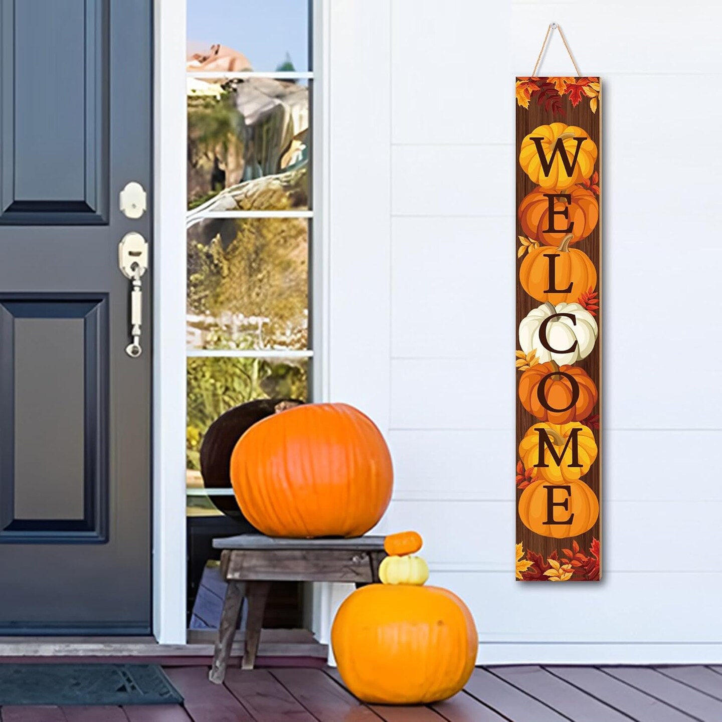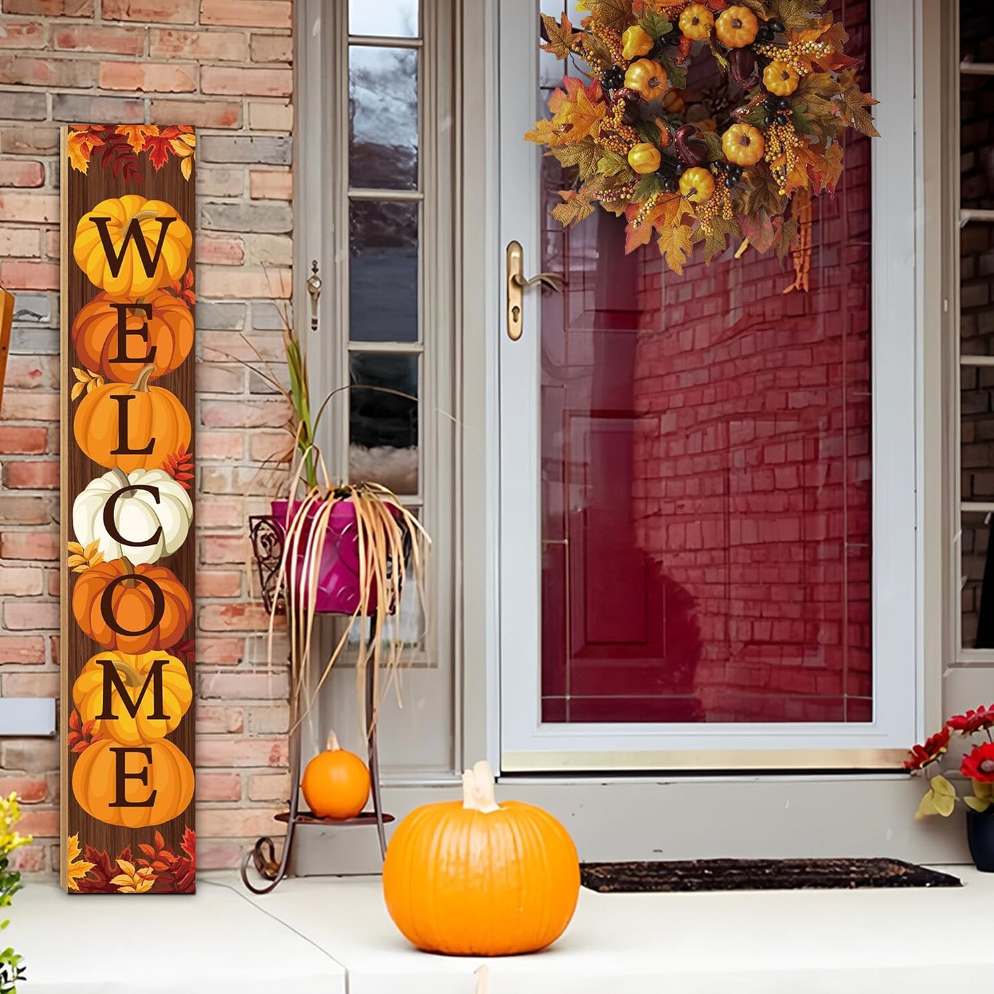 47" Fall Wooden Porch Sign Vertical Fall Welcome Standing Signs(brown)