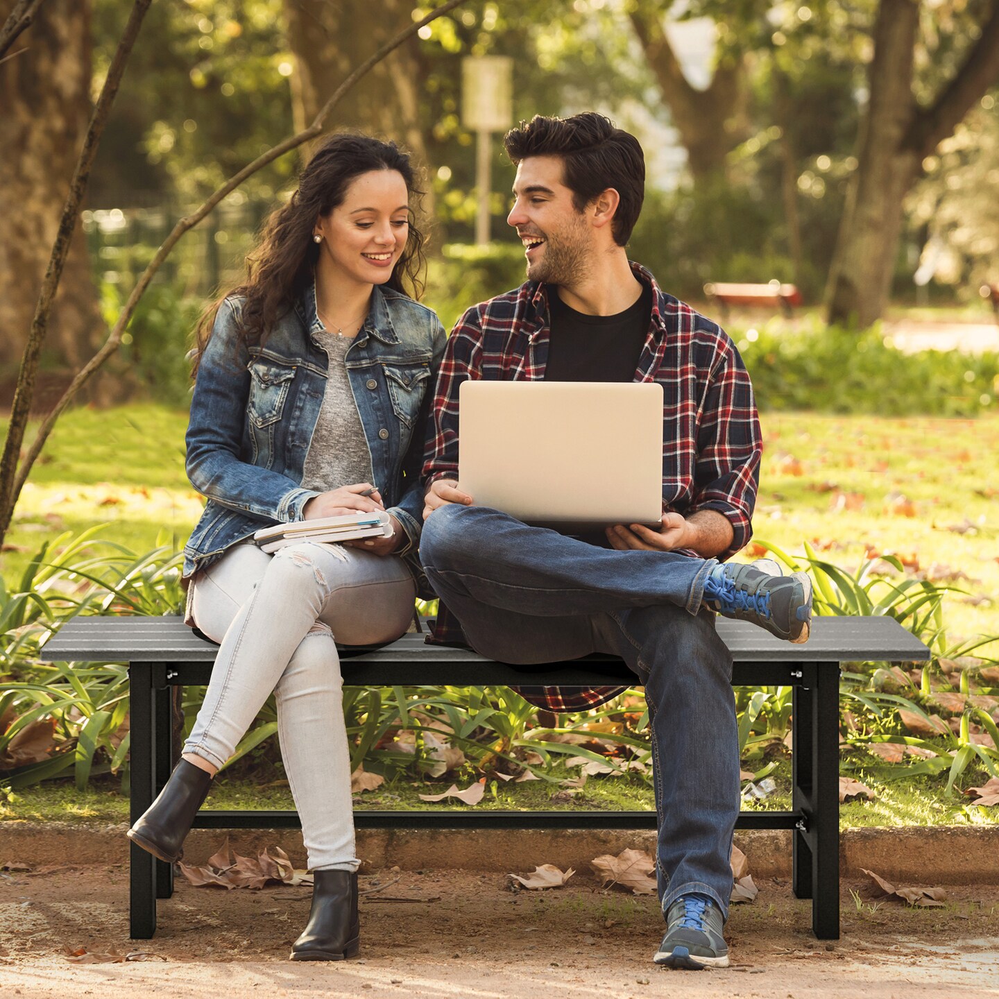 47" Outdoor Chair with Slatted Seat Plastic Coated Iron Frame