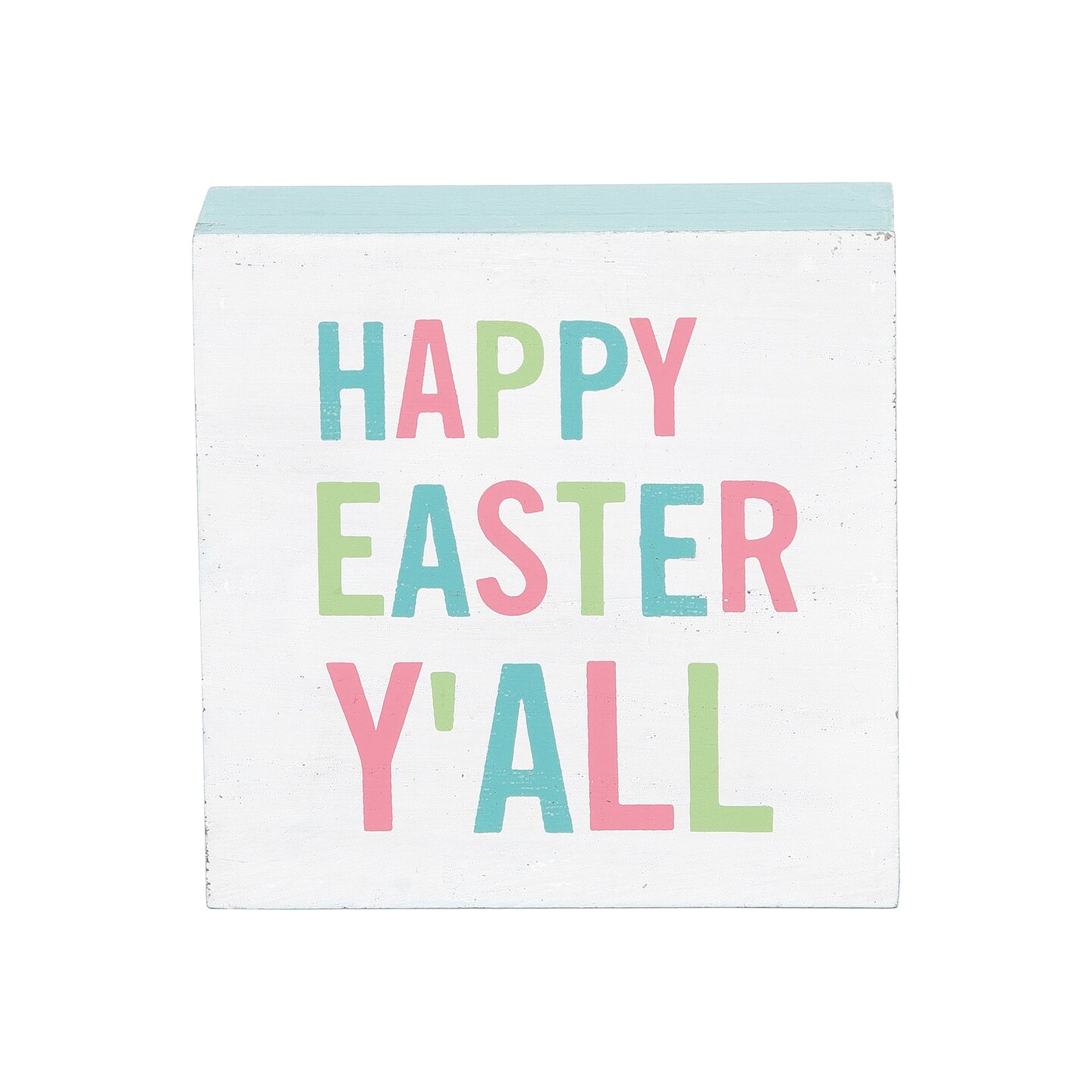 4.75" Spring "Happy Easter Y'All" Decorative Wood Single Centerpiece Block