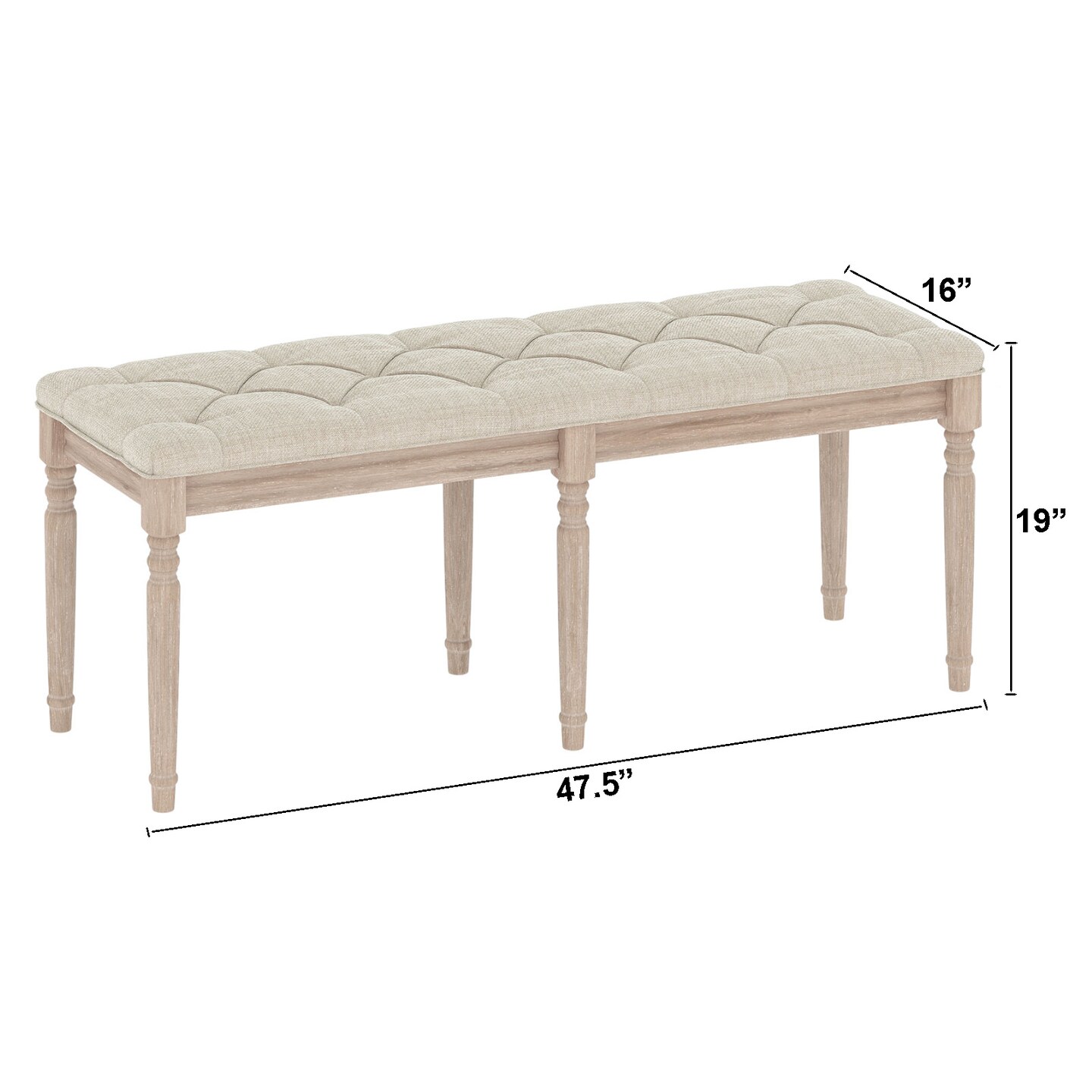 47.5" Upholstered Bench with Carved Rubber wood Legs and Padded Seat