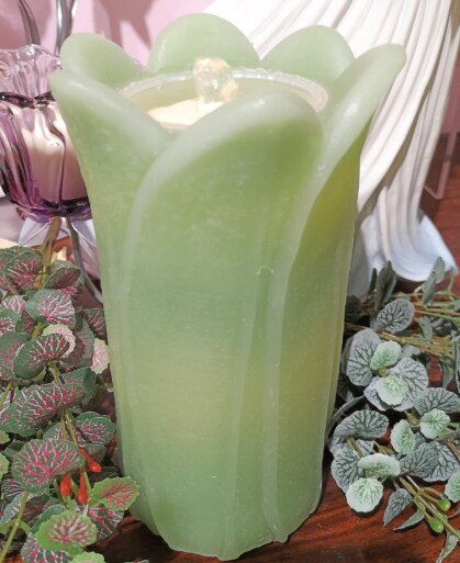 4.75x8 Green Tulip Fountain Candle – LED Bubbling Candle with Remote-LC3260-GRN