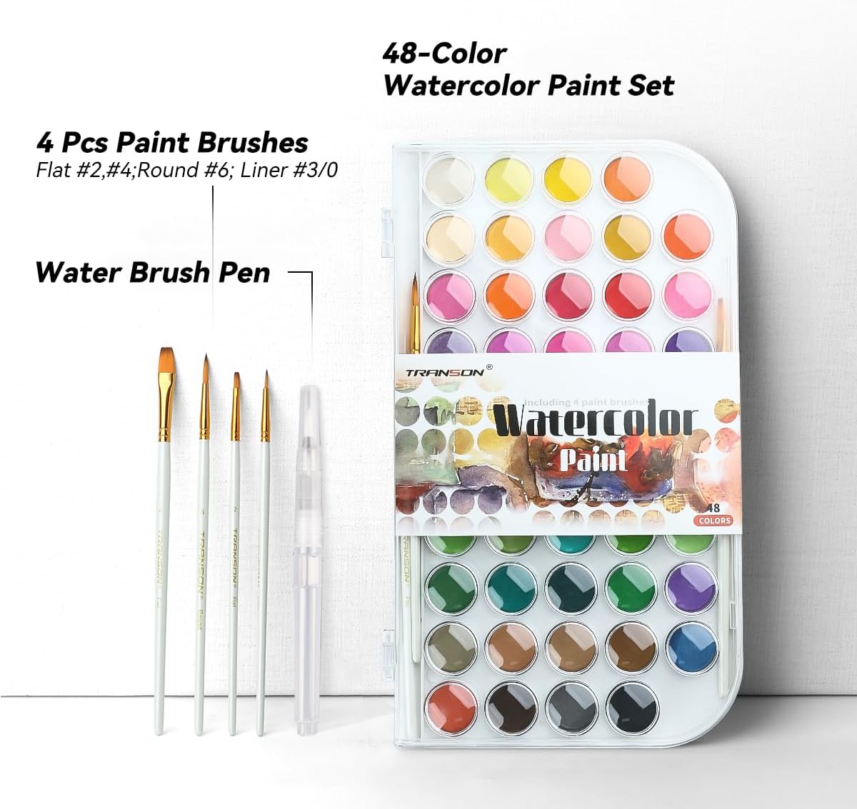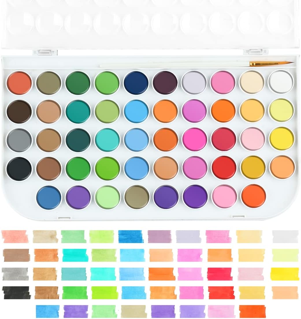 48 Colors Watercolor Paint Set with 4pcs Paint Brushes and 1pcs Water Brush Pen for Adults, Students, Beginners and Artists