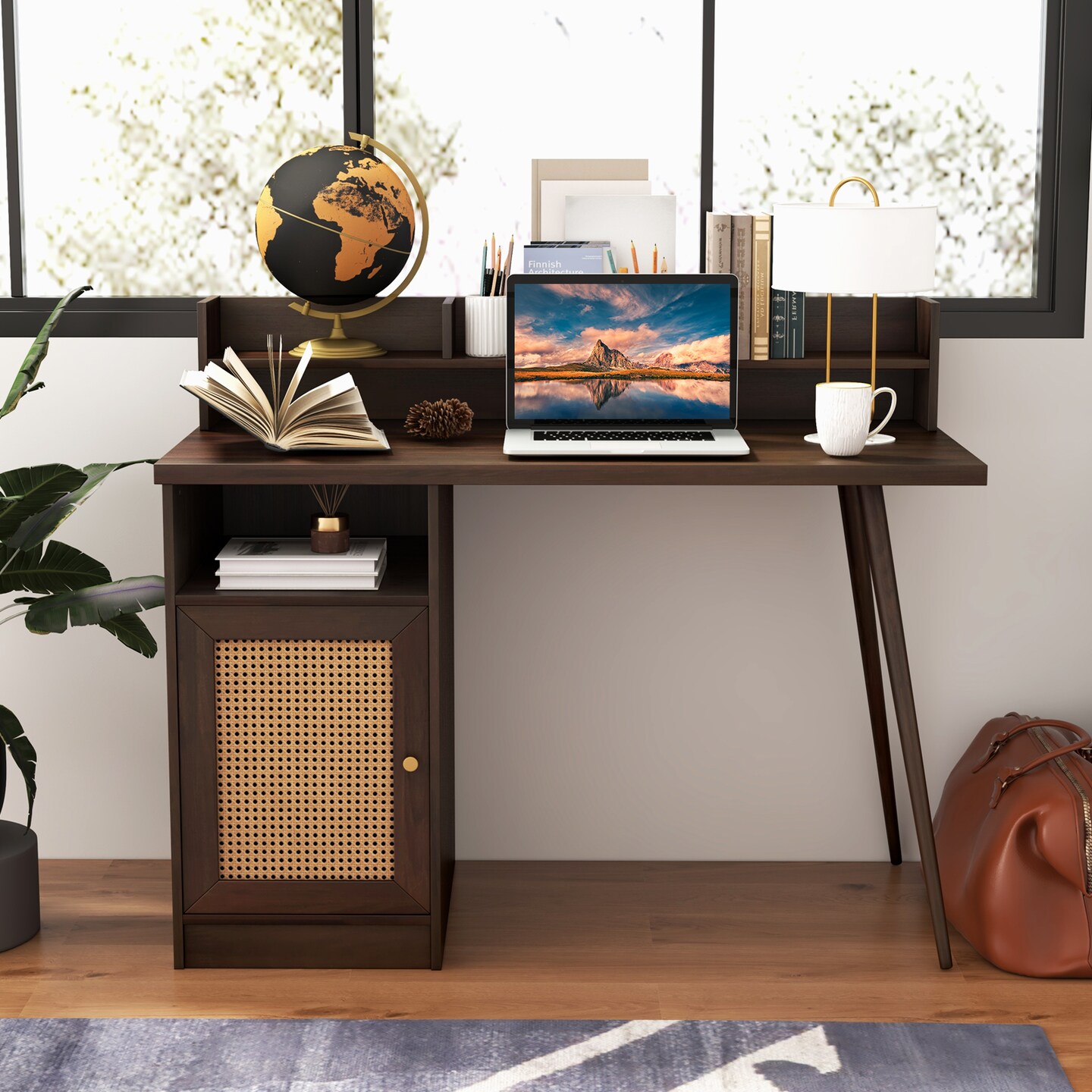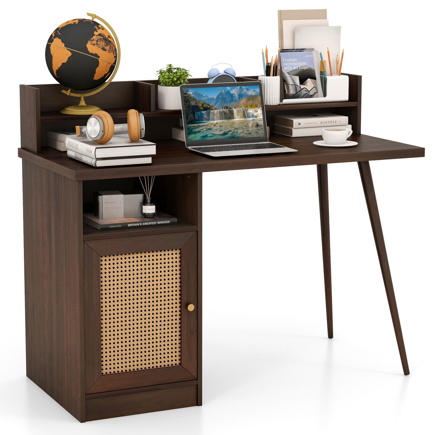 48 Inch Computer Desk With Hutch And Pe Rattan Cabinet Shelves