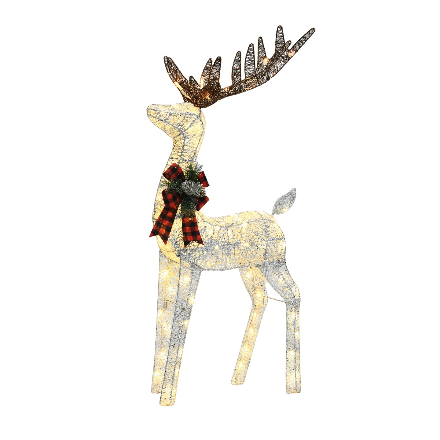 48 Inch H Reindeer and 38 Inch L Sleigh Set With Warm White LED Christmas Decoration