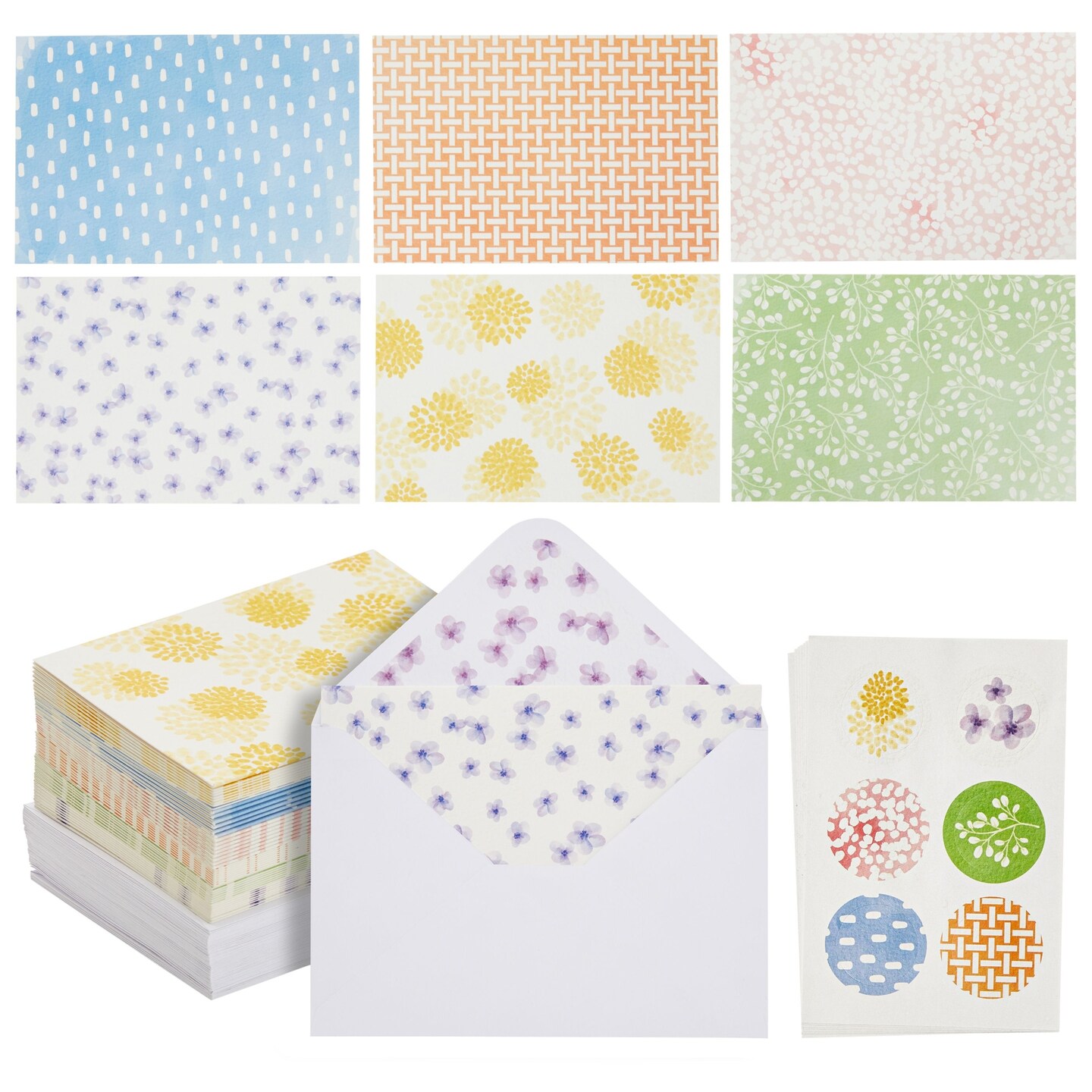 48 Pack Floral Stationery Cards with Envelopes and Stickers, 6 Patterns (4 x 6 In)