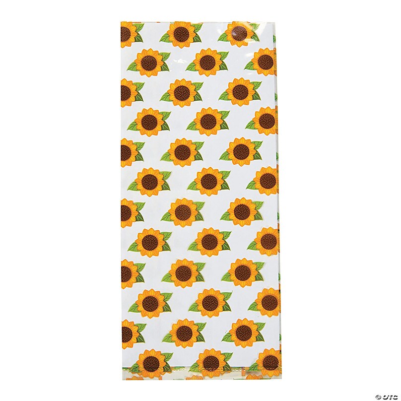 48 Pc. 5-1/2" x 11-1/2" Small Sunflower Cellophane Treat Bags with Ties for 24 Guests