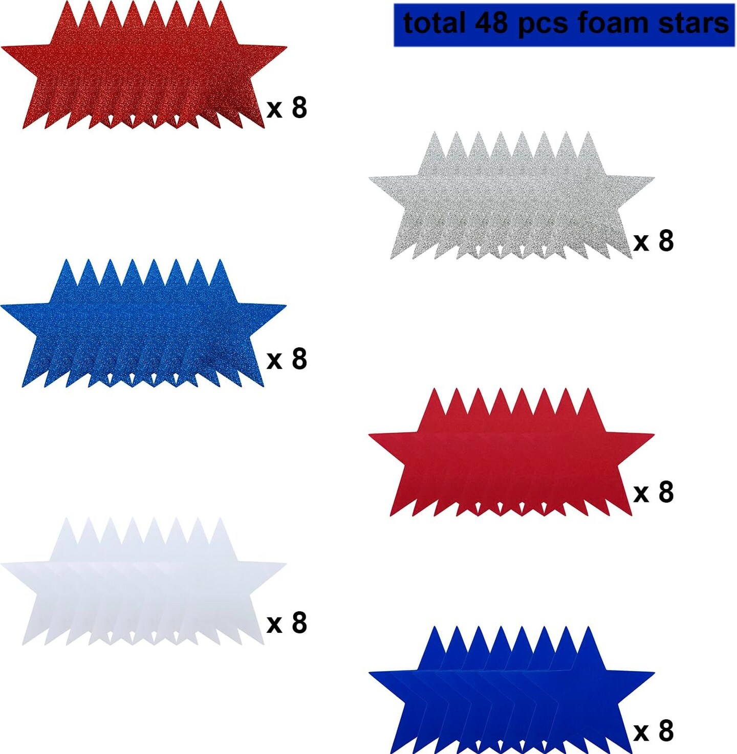 48 Pcs 6 Inch - 4th of July Independence Day Foam Stars for Crafts, Red White and Blue