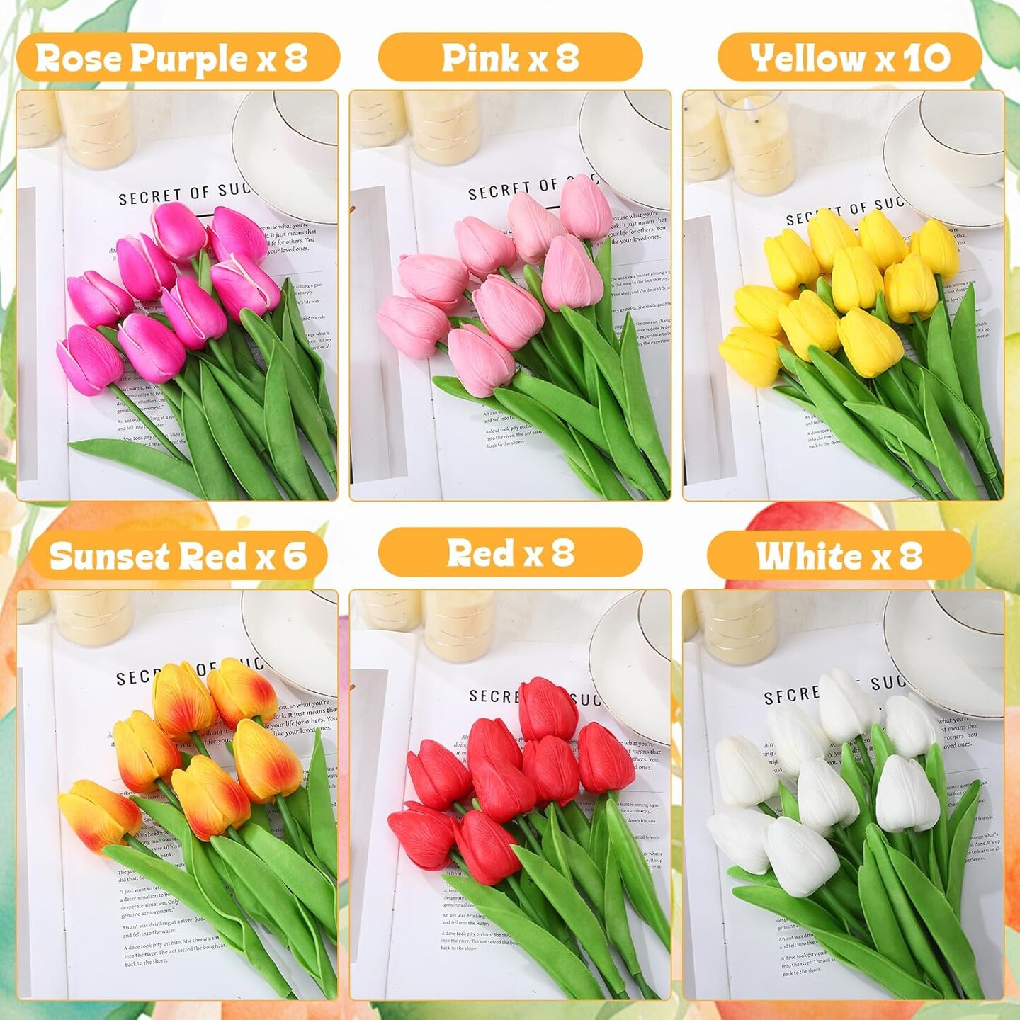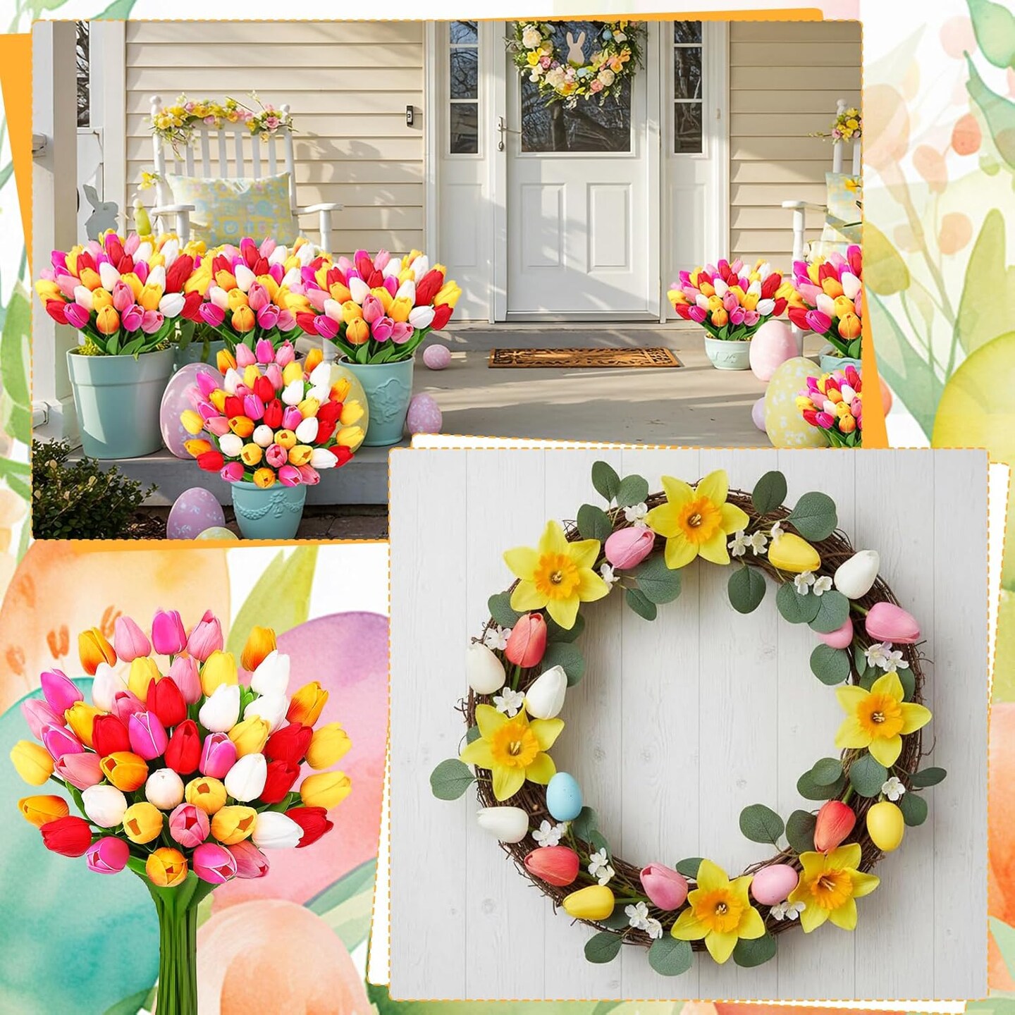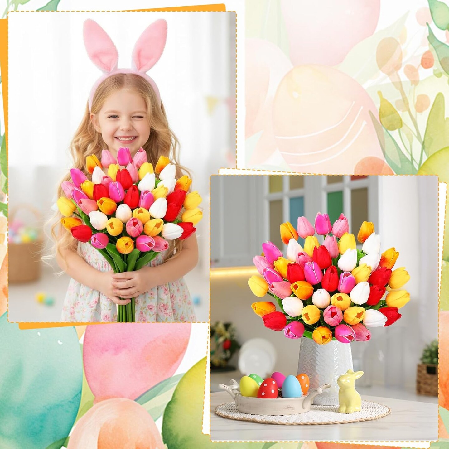 48 Pcs Artificial Tulips – Real Touch Faux Flowers in Mixed Colors for Easter, Spring, Weddings & Home Decor