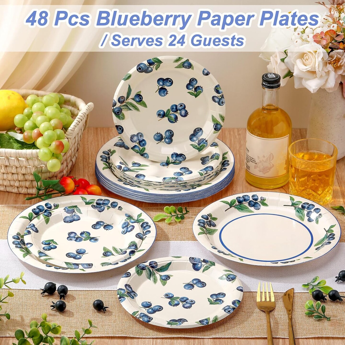 48 Pcs Baby Shower Paper Plates Set - 9 Inch and 7 Inch (Blueberry)