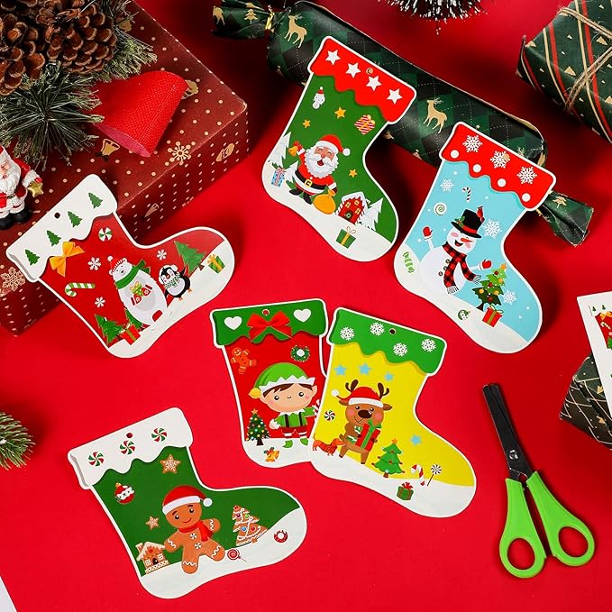 48 Pcs Christmas Craft Kits for Kids Christmas Stockings Christmas Tree Stockings Ornaments Kit Make Your Own Christmas Craft DIY Stockings Cutouts for Holiday Farmhouse Decor Handcraft Supplies