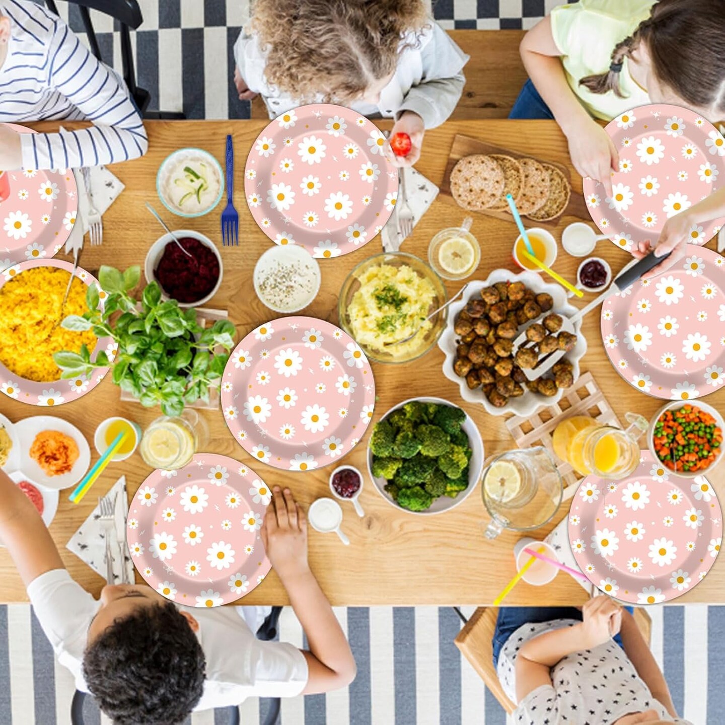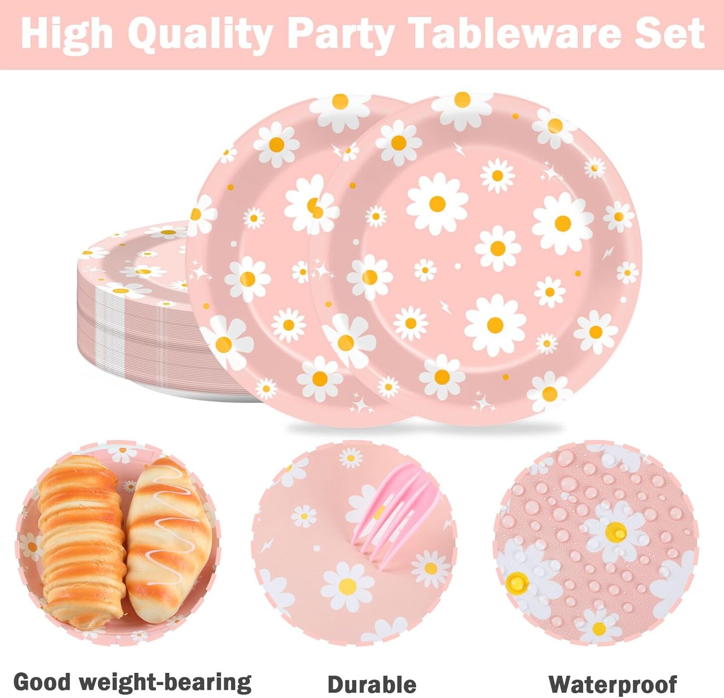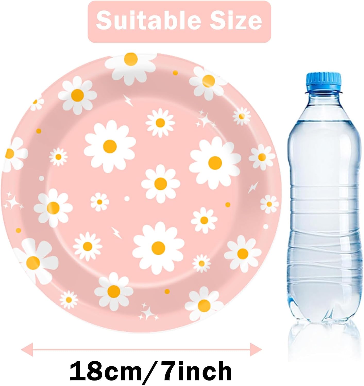 48 PCS Daisy Paper Plates 7 Inch Daisy Flower Party Groovy Tableware Pink Groovy Boho Dessert Plates Decorations for Birthday Baby Shower Wedding Disposable Party Favors