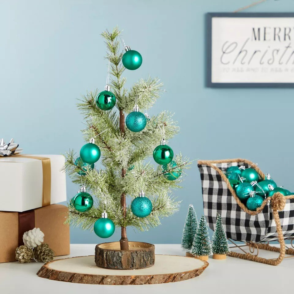 48 Pcs Mini Christmas Ball Ornaments, 1.5” Green Hanging Tree Décor for Holiday
