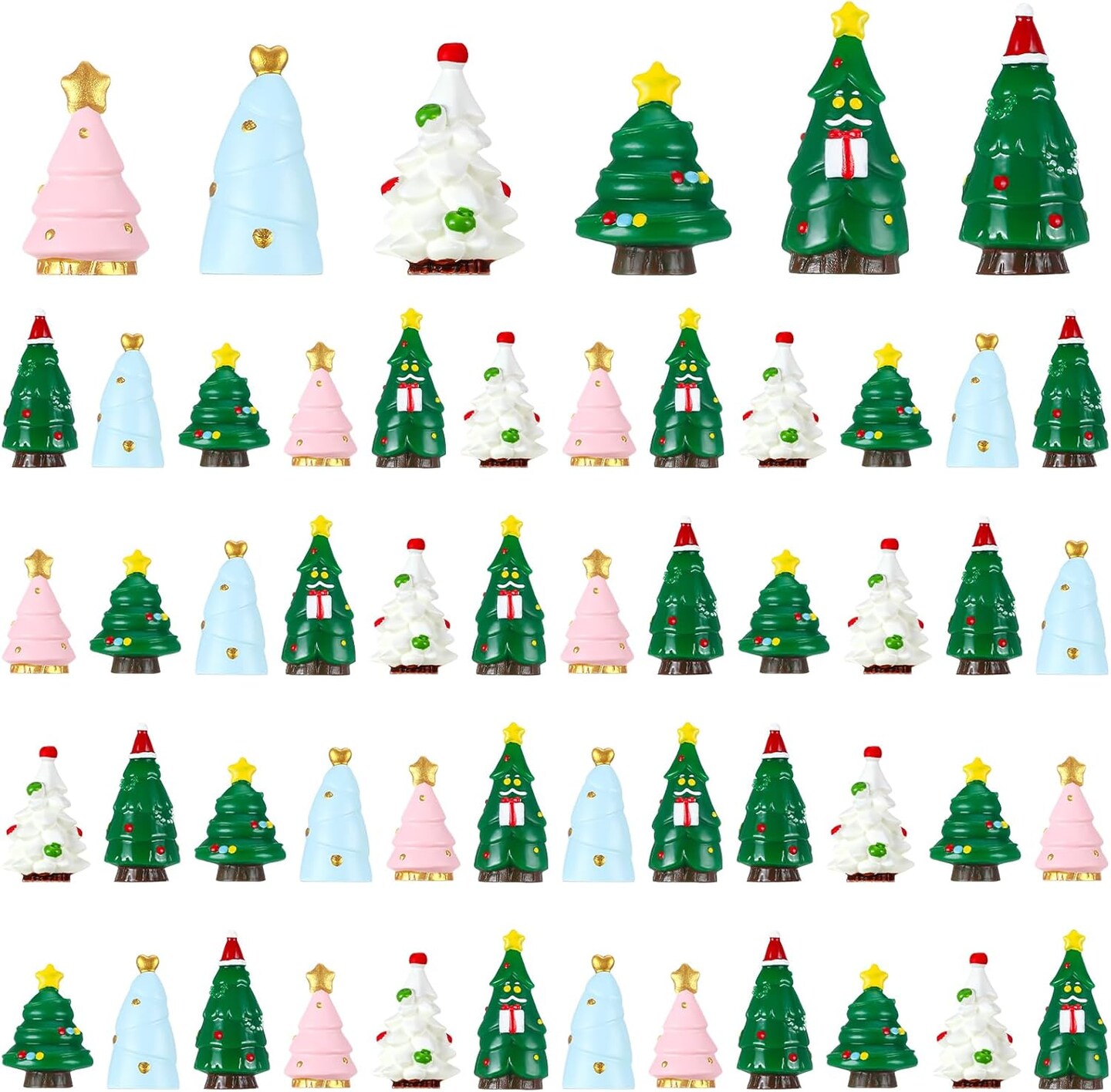 48 Pcs Mini Resin Figurines Miniature Statues Christmas Tree (Multicolor) 11.81 x 7.87 x 1.77 inches