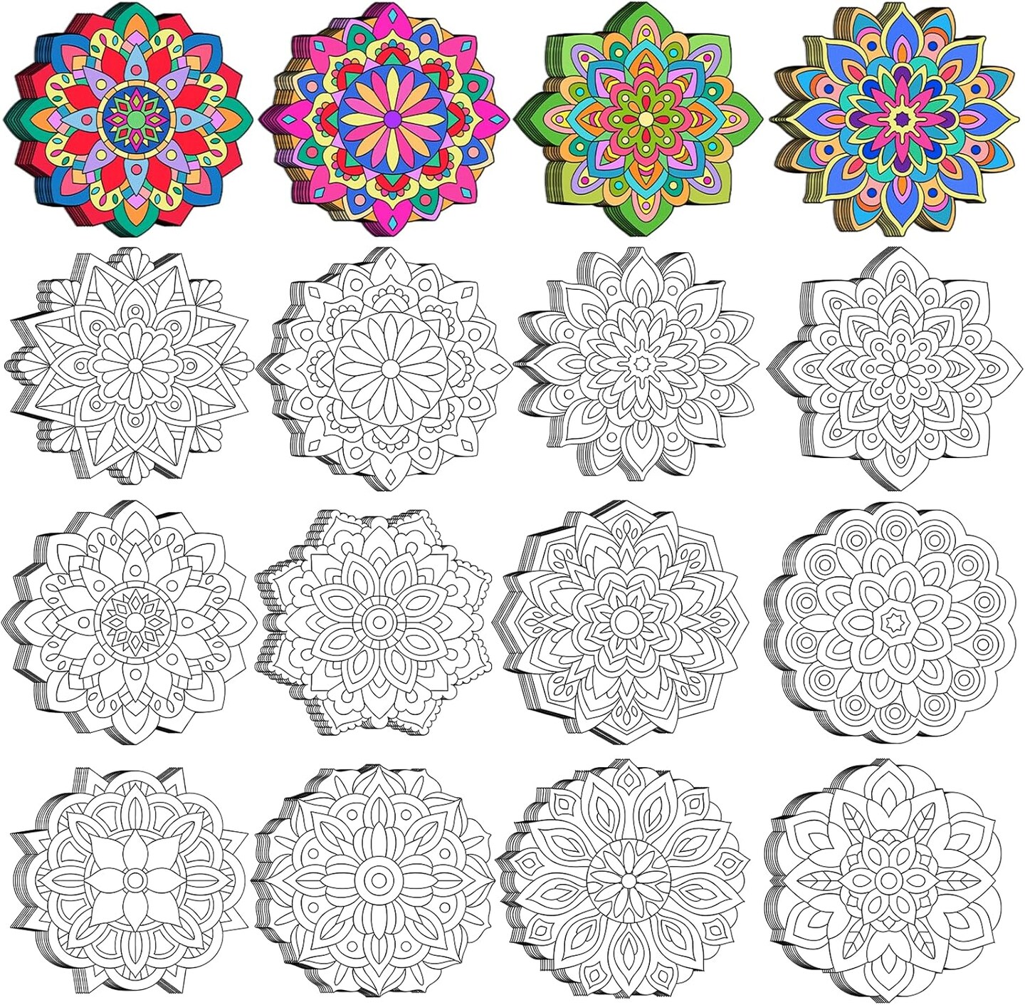 48 Pcs Summer Mandala Coloring Cutouts Set DIY Your Own Mandala Cards Mandala Painting Poster Stress Relieving Activity Crafts Art
