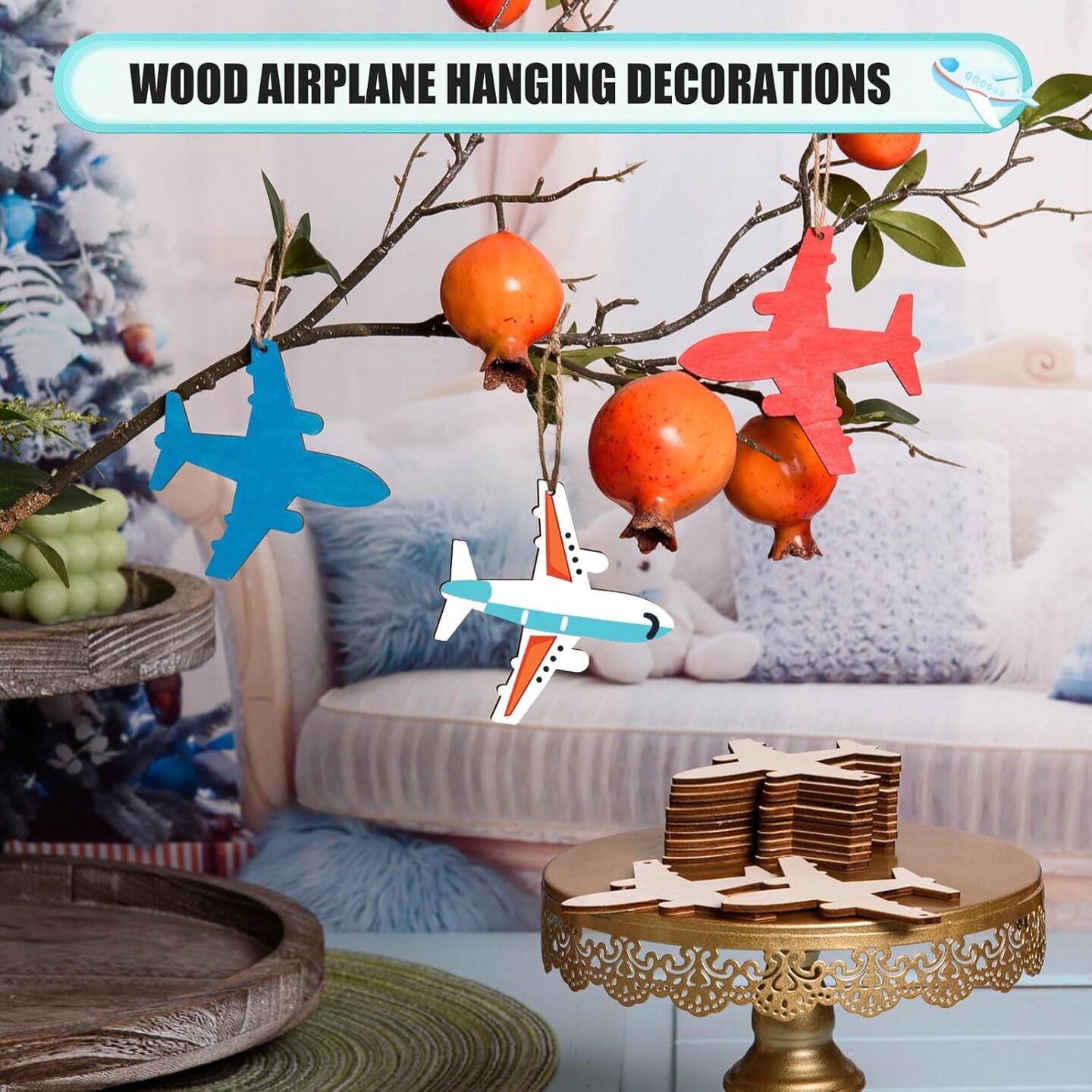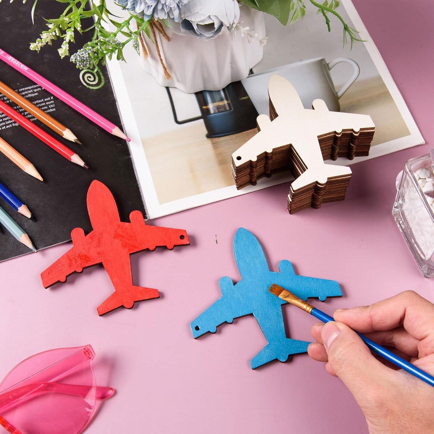 48 Pcs Wooden Airplane Cutouts Unfinished Wooden Plane Shape