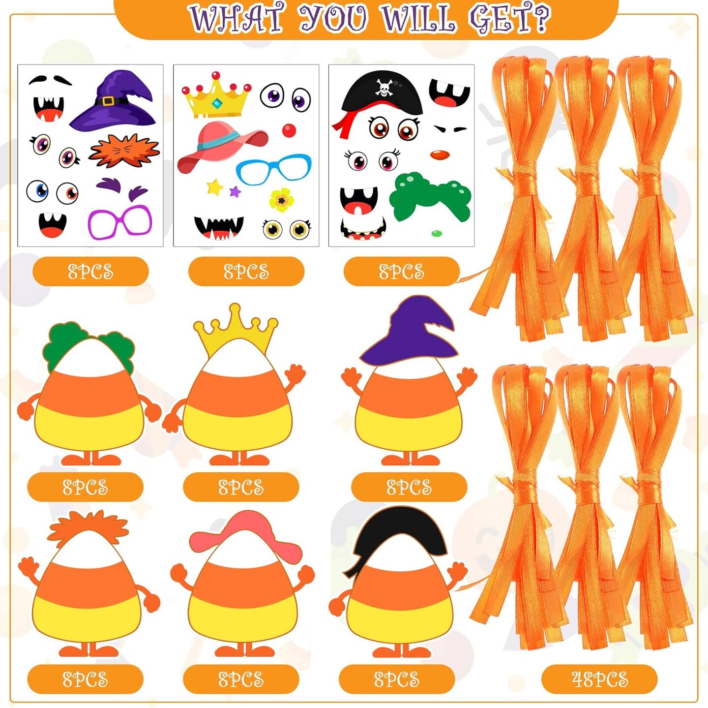 48 Pcs-Halloween Craft Kits for Kids,DIY Handicraft Make Your Own Stickers