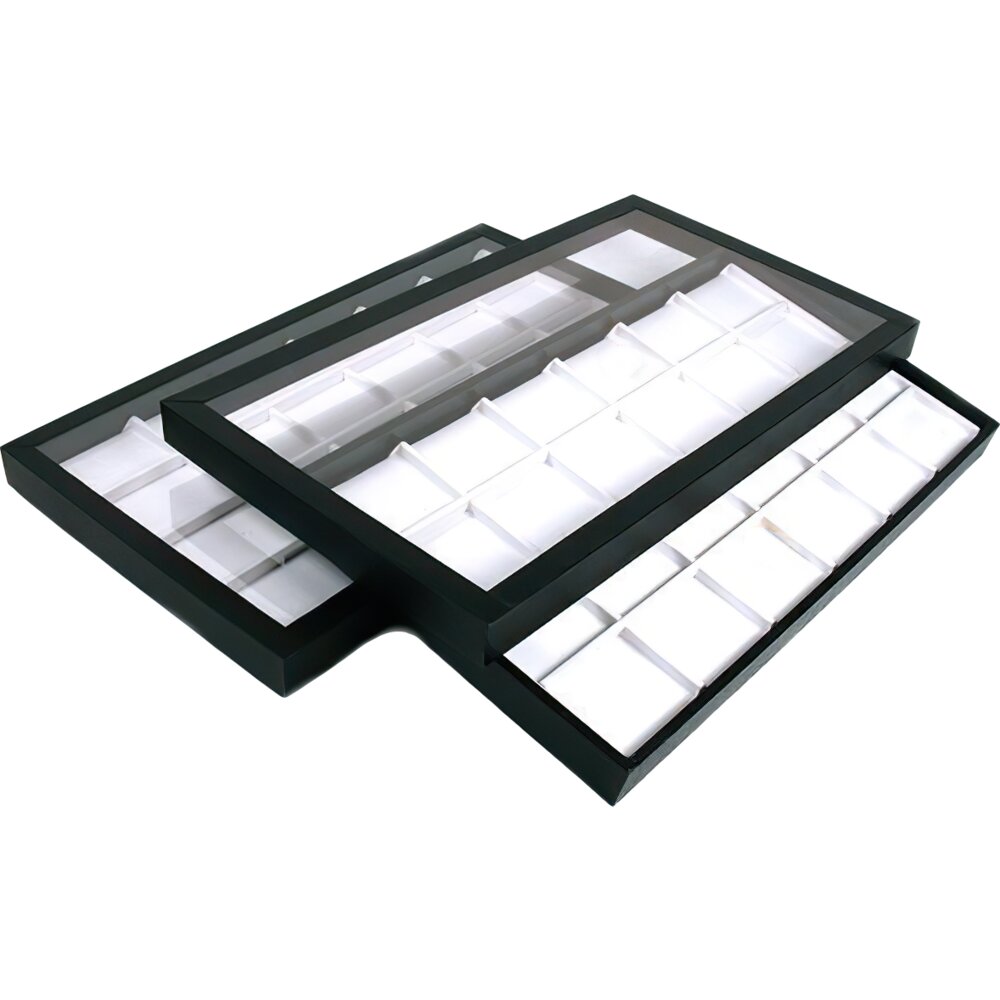 48 Slot White Faux Leather Display Clear Lid Case