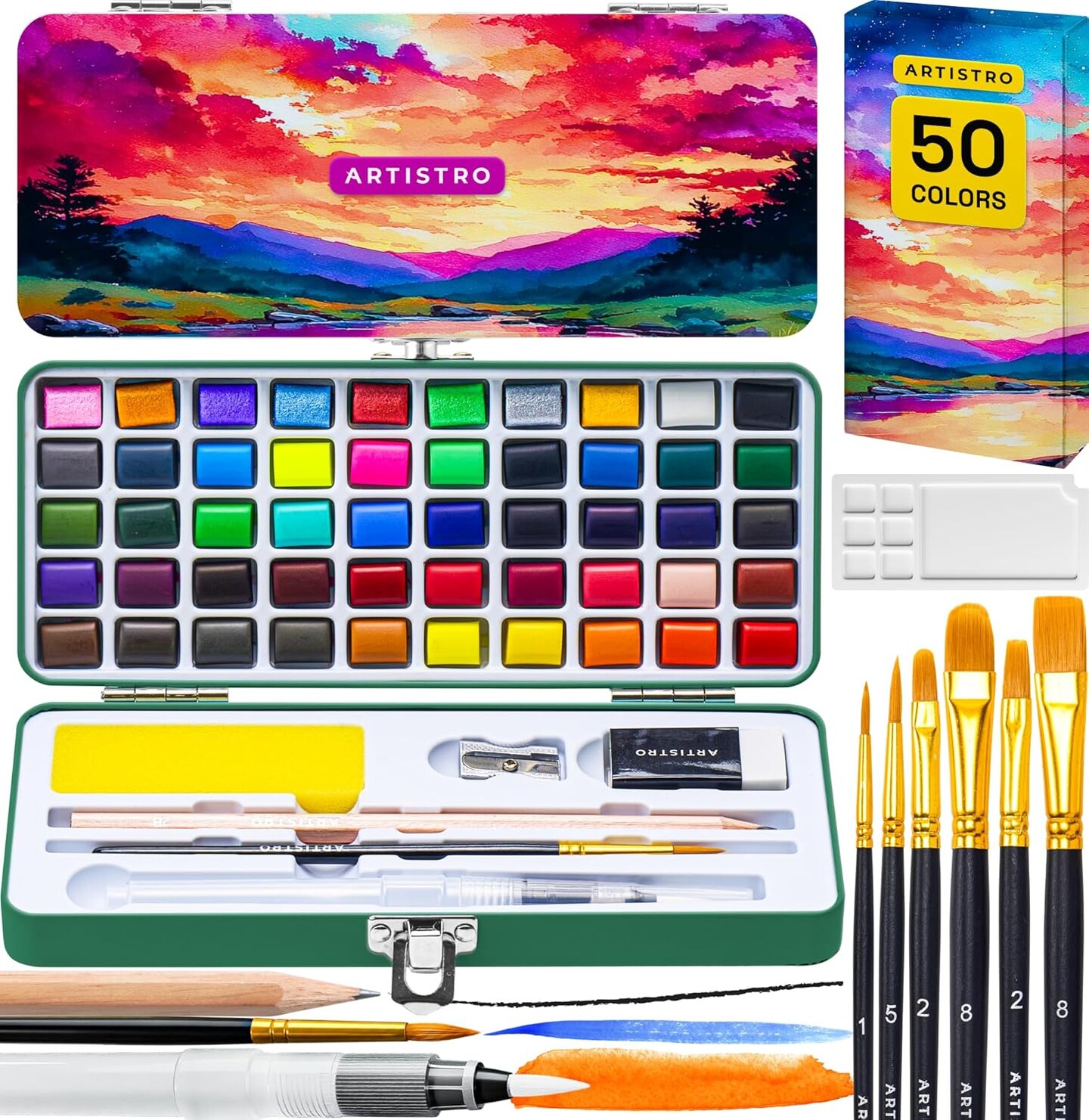 48 Vivid Colors in Portable Box,Watercolor Paint Set, Including Metallic and Fluorescent Colors for Artists, Amateur Hobbyists and Painting Lovers, Perfect For Travel