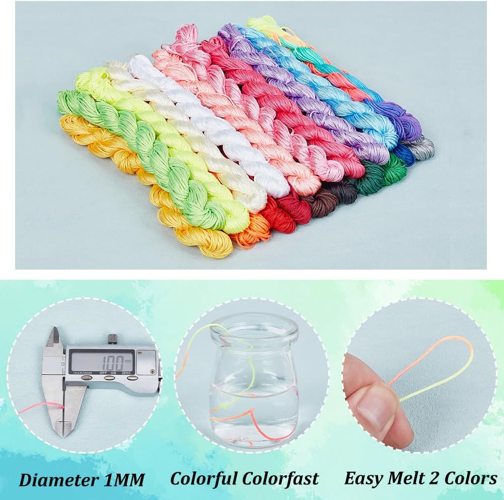 480 Yard 1mm Nylon String Chinese Knotting Cord 20 Colors Nylon Thread Kumihimo Macrame Thread Braided Beading String Cord Blinds Lift Cord for Macrame Friendship Bracelet Hair Decor