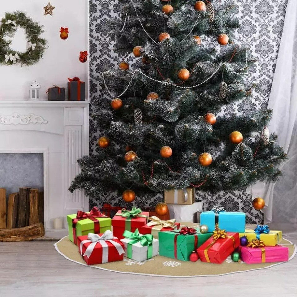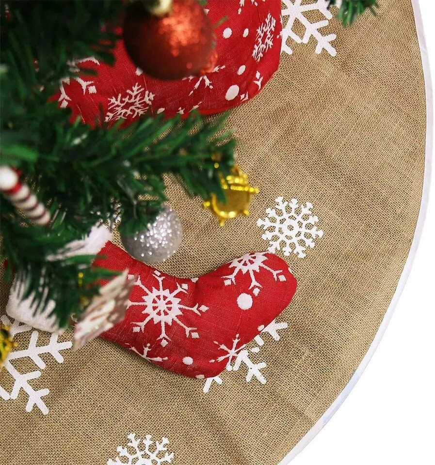48"Christmas Tree Skirt, Natural Burlap with Brown Color for Displaying Presents