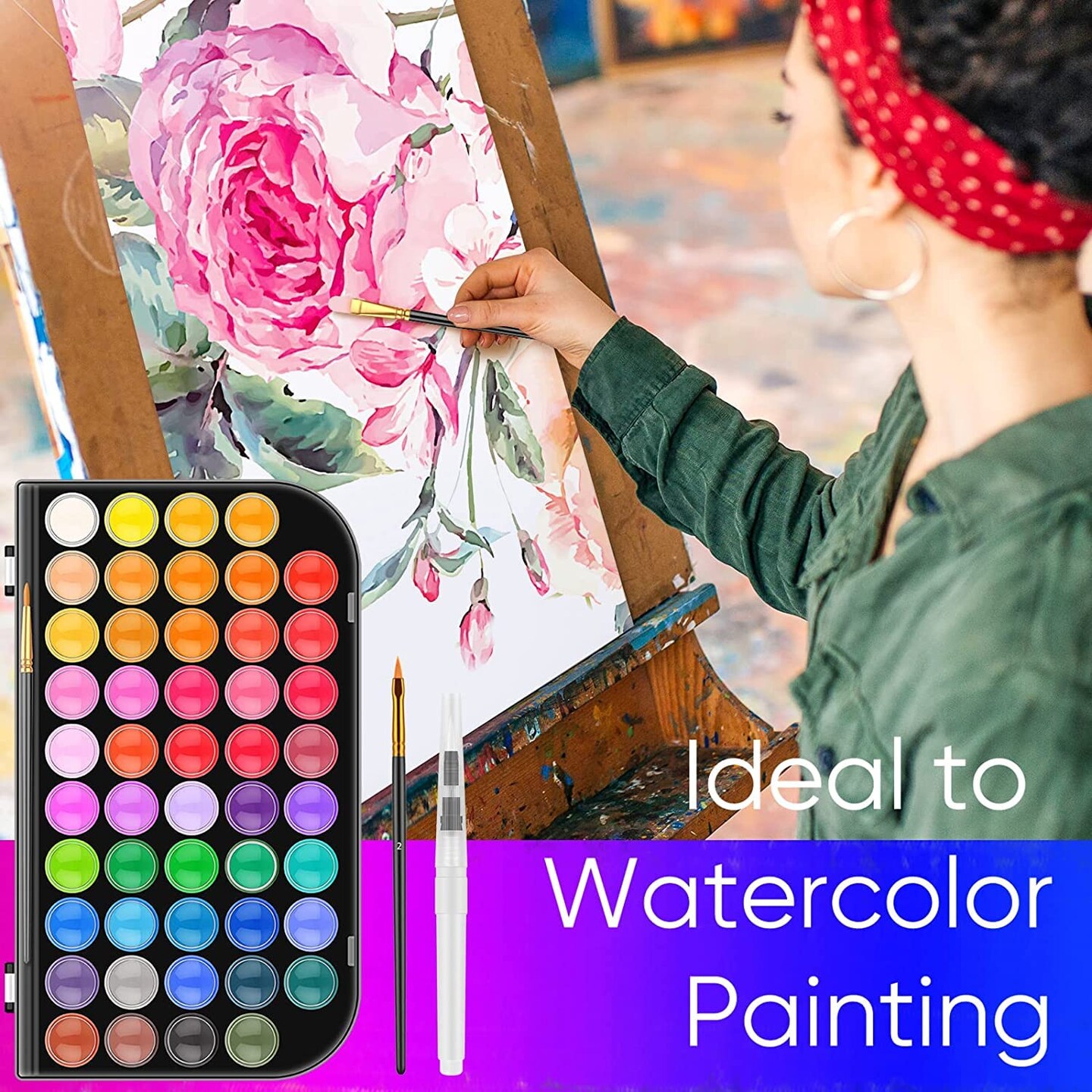 48-Color Watercolor Paint Set With Brush, Refillable Water Brush Pen, Palette, and Water-Washable Paints for Kids, Adults and Artists
