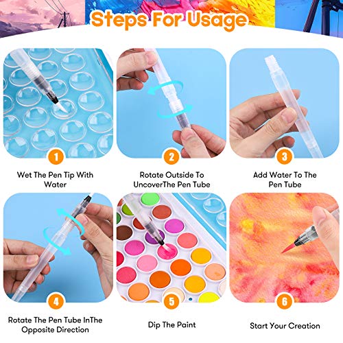 48-Color Watercolors Cake & a Brush a Refillable Water Brush Pen, Portable Water Colors Paints Set for Kids Children Students Adults Beginner Artists Painting Supplies