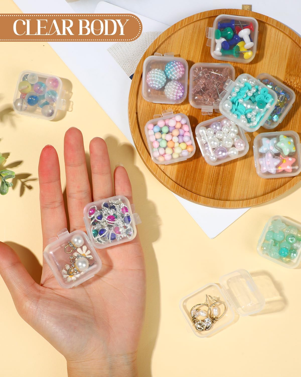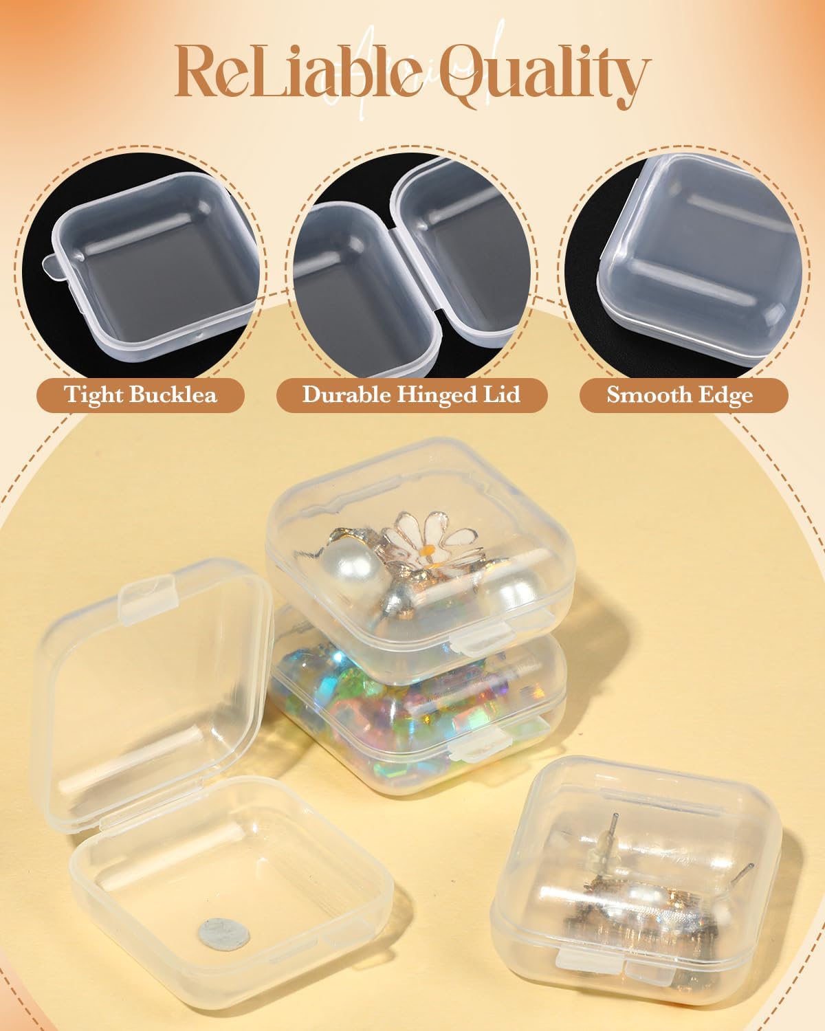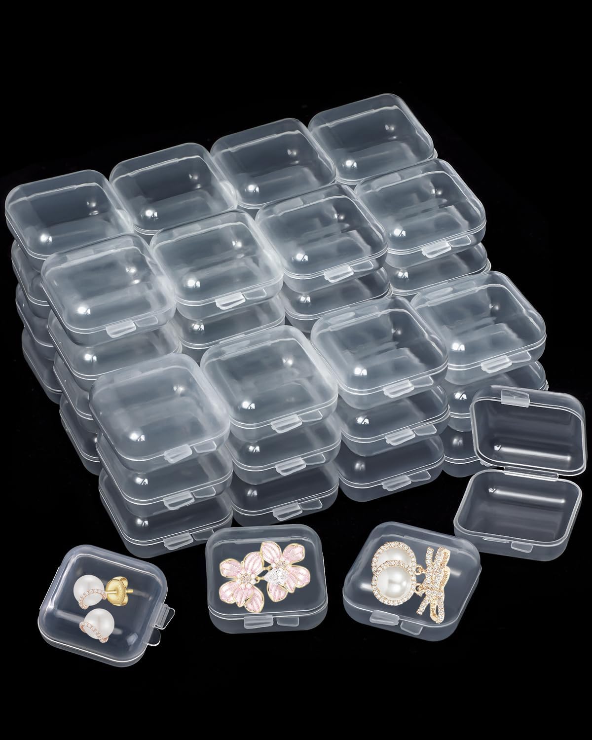 48PCS Mini Clear Jewelry Box, Small Plastic Storage Box with Lids 1.37 x 1.37 x 0.7 Inches Craft Bead Organizer Travel Earring Storage Containers for Rings, Earbuds, Diamond Art