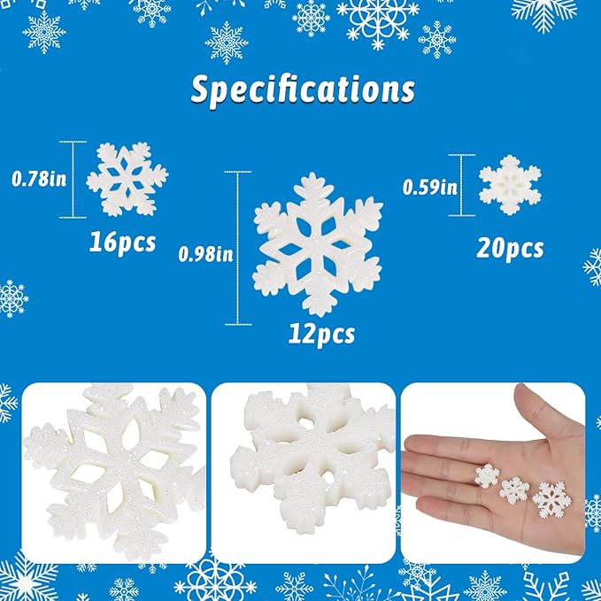 48pcs White Glitter Snowflake for Christmas Embellishment DIY Craft Project Winter Wonderland Supply